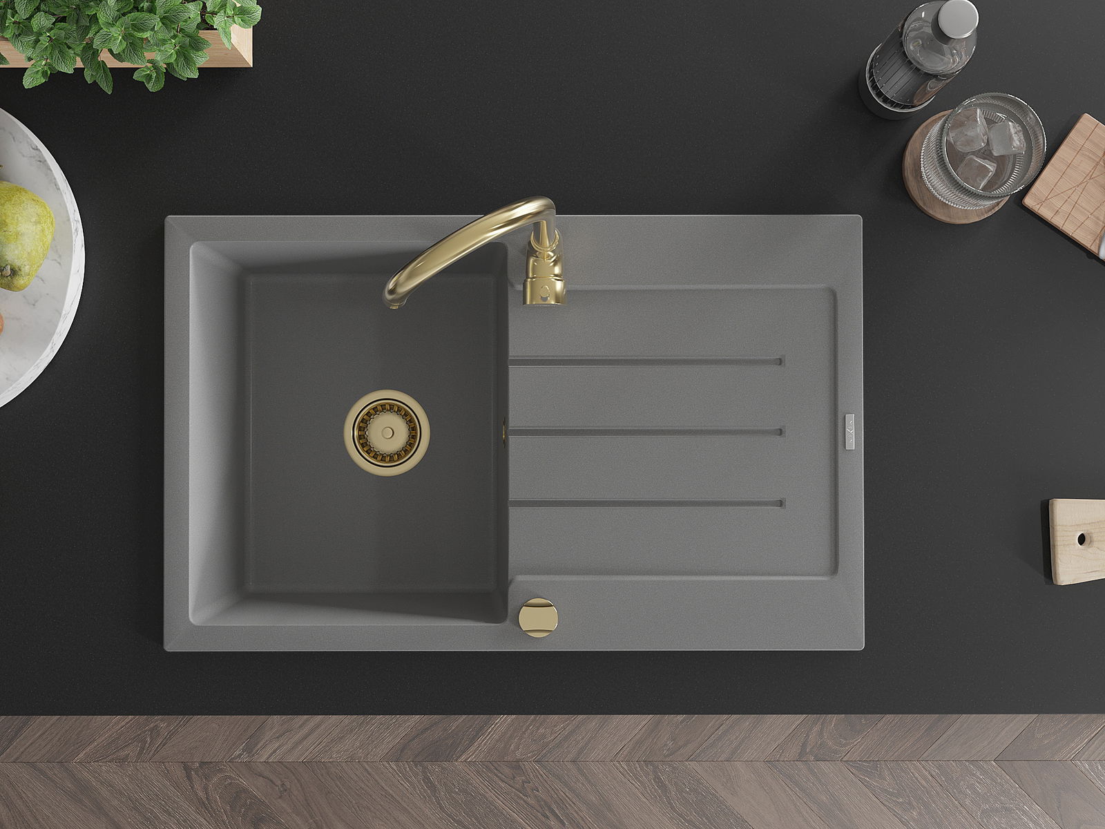 A mosogató kiváló minőségű gránitból készül. Ez egy elegáns és mindenekelőtt minden konyhához praktikus kiegészítés, stílusától függetlenül. A kiváló minőségű és a gránit tartósság biztosítja a sok éves használatát.