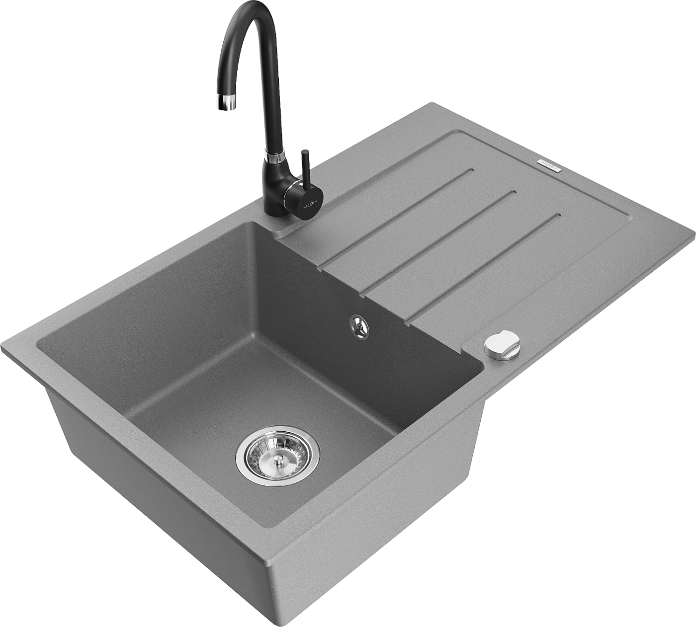 Mexen Bruno egykamrás gránit mosogatótálca csepegtetővel és Telma konyhai csapteleppel, szürke - 6513-71-670200-70