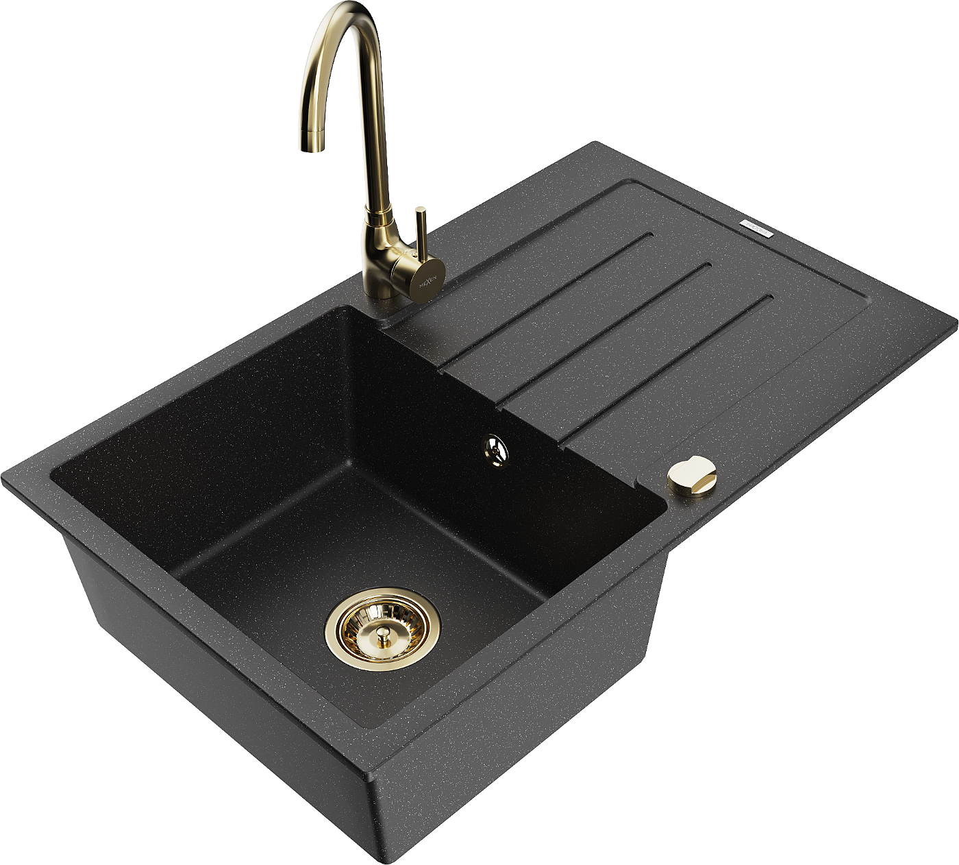 Mexen Bruno egymedencés gránit mosogató csepegtetővel és Telma konyhai csapteleppel, fekete/ezüst - 6513-73-670200-50