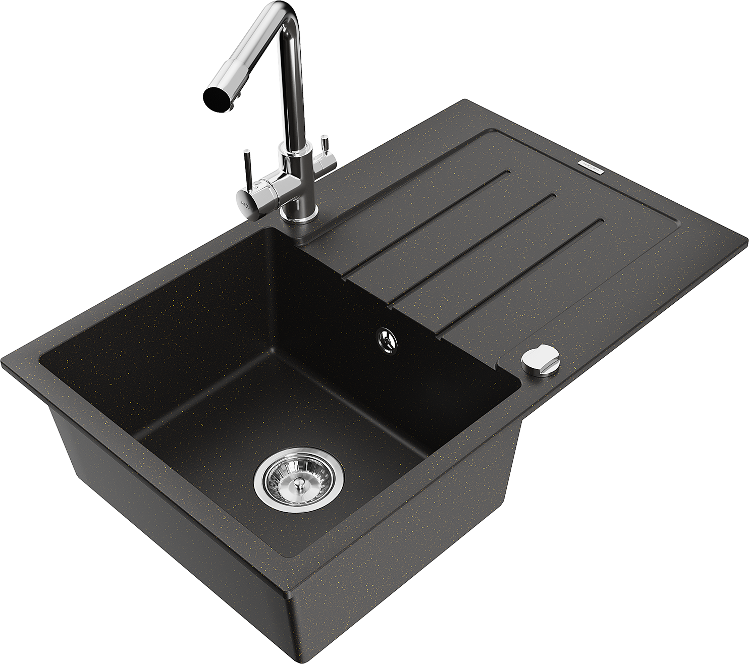 A mosogató kiváló minőségű gránitból készül. Ez egy elegáns és mindenekelőtt minden konyhához praktikus kiegészítés, stílusától függetlenül. A kiváló minőségű és a gránit tartósság biztosítja a sok éves használatát.