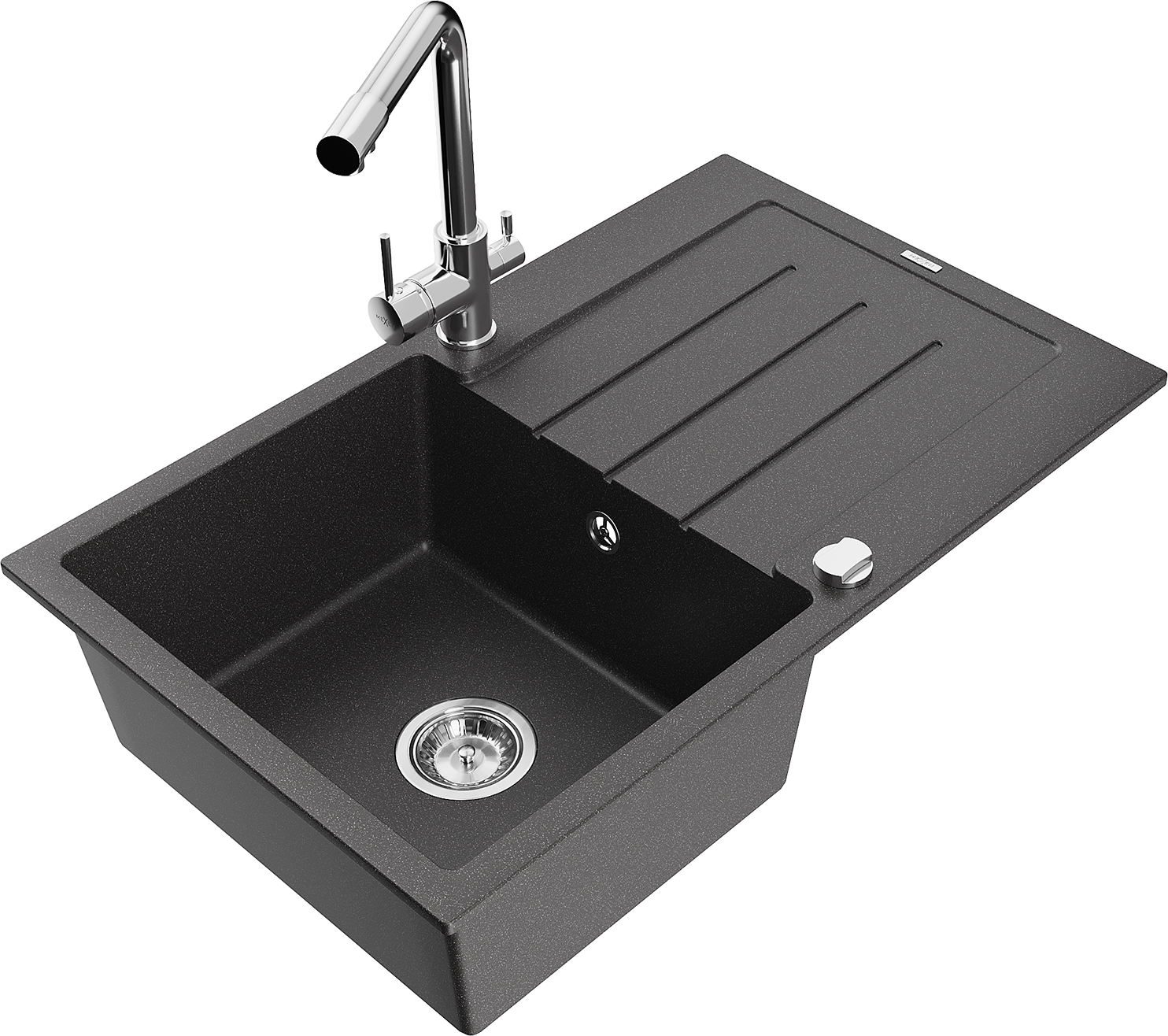 A mosogató kiváló minőségű gránitból készül. Ez egy elegáns és mindenekelőtt minden konyhához praktikus kiegészítés, stílusától függetlenül. A kiváló minőségű és a gránit tartósság biztosítja a sok éves használatát.
