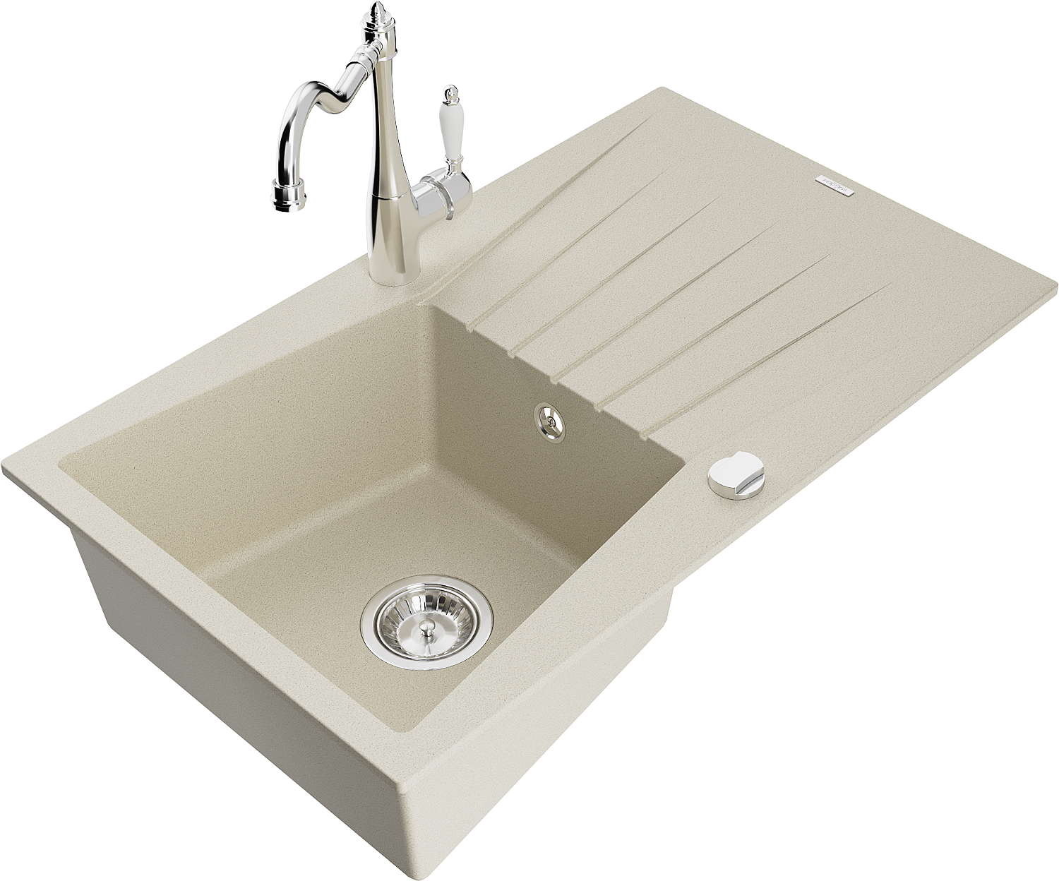 Mexen Cesar egymedencés gránit mosogató csepegtetővel és Carla konyhai csapteleppel, bézs - 6514-69-670700-00