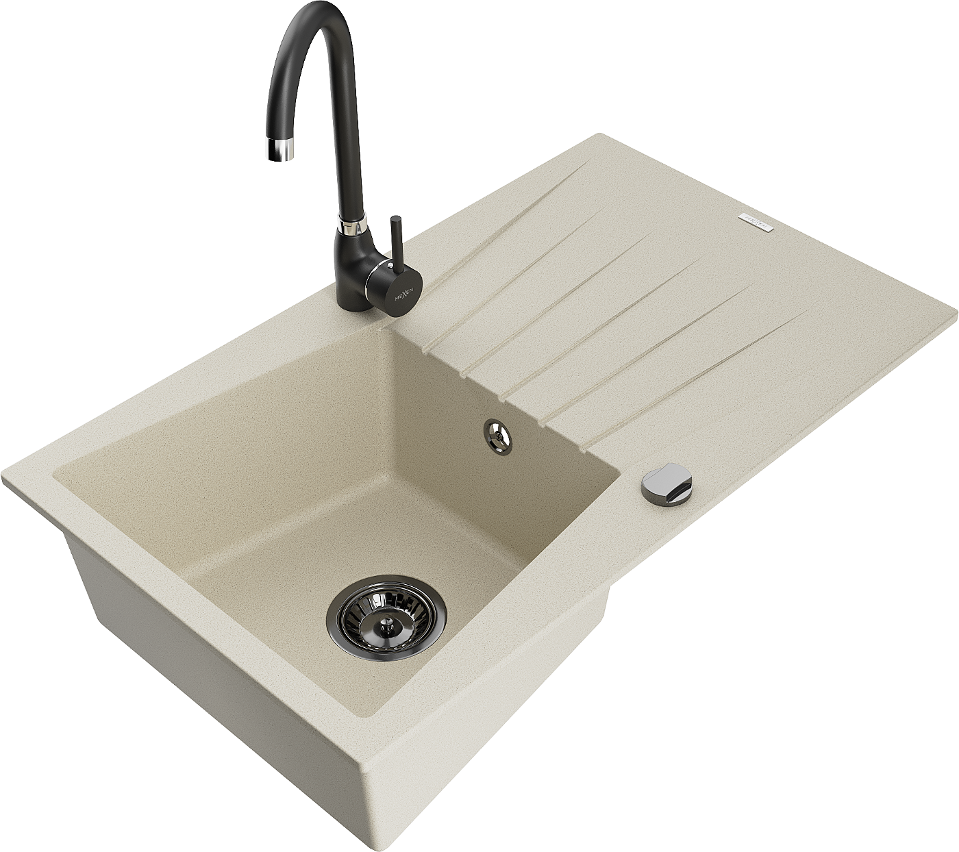 Mexen Cesar gránit mosogató 1-medencés csepegtetővel és Telma konyhai csappal, bézs - 6514-69-670200-70