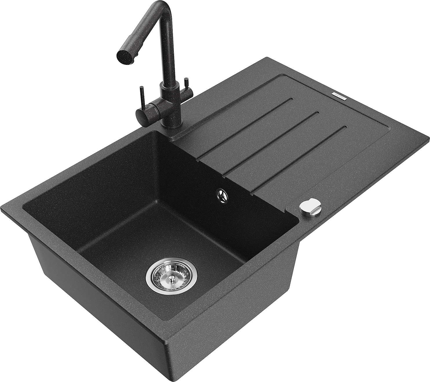 A mosogató kiváló minőségű gránitból készül. Ez egy elegáns és mindenekelőtt minden konyhához praktikus kiegészítés, stílusától függetlenül. A kiváló minőségű és a gránit tartósság biztosítja a sok éves használatát.