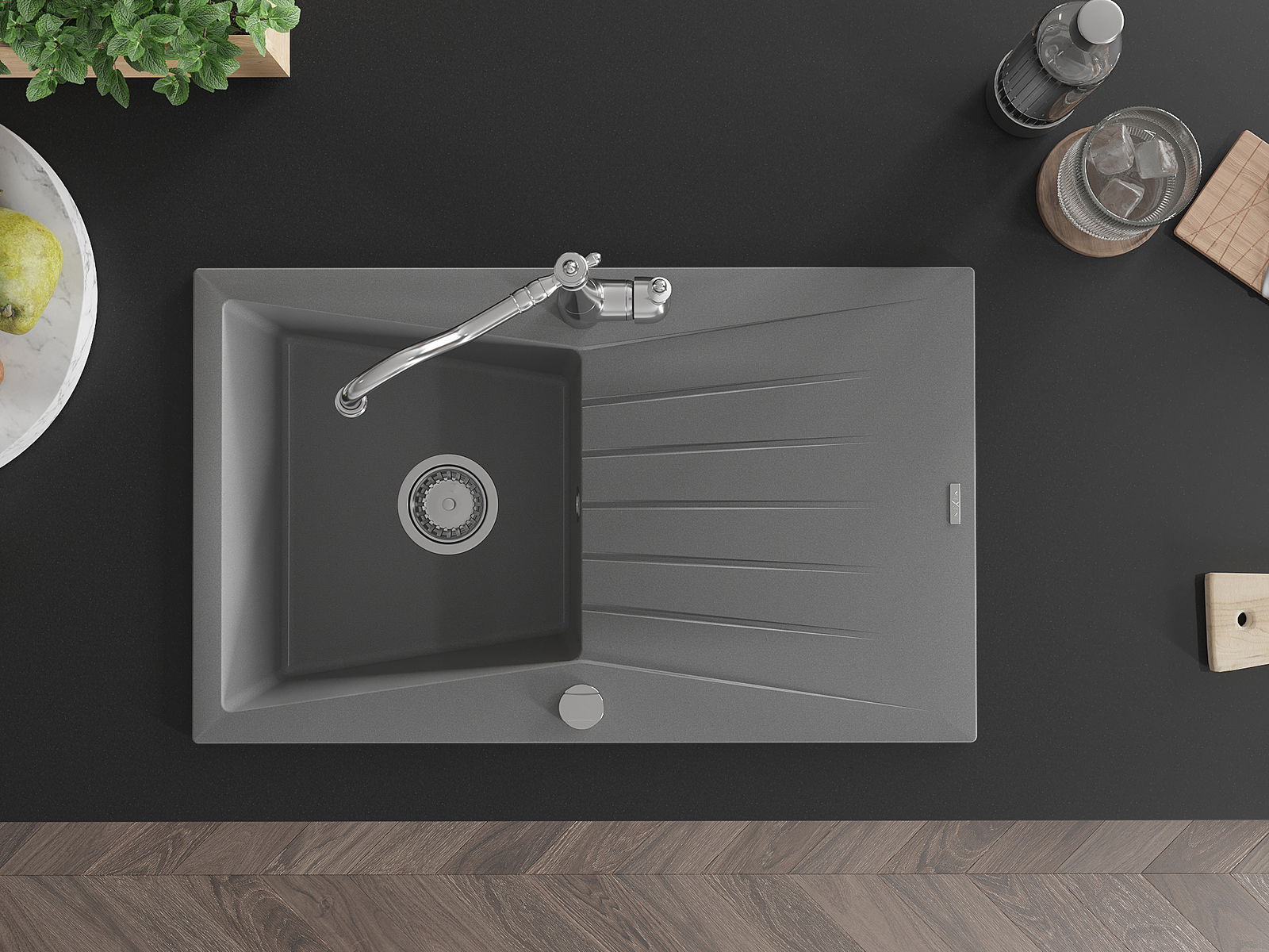 A mosogató kiváló minőségű gránitból készül. Ez egy elegáns és mindenekelőtt minden konyhához praktikus kiegészítés, stílusától függetlenül. A kiváló minőségű és a gránit tartósság biztosítja a sok éves használatát.