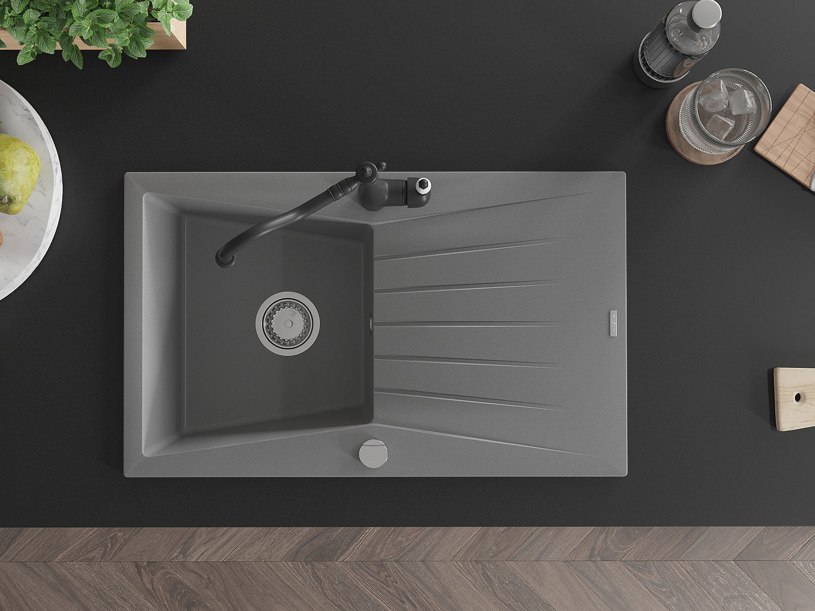 Mexen Cesar egykamrás gránit mosogató csepegtetővel és Carla konyhai csapteleppel, szürke - 6514-71-670700-70