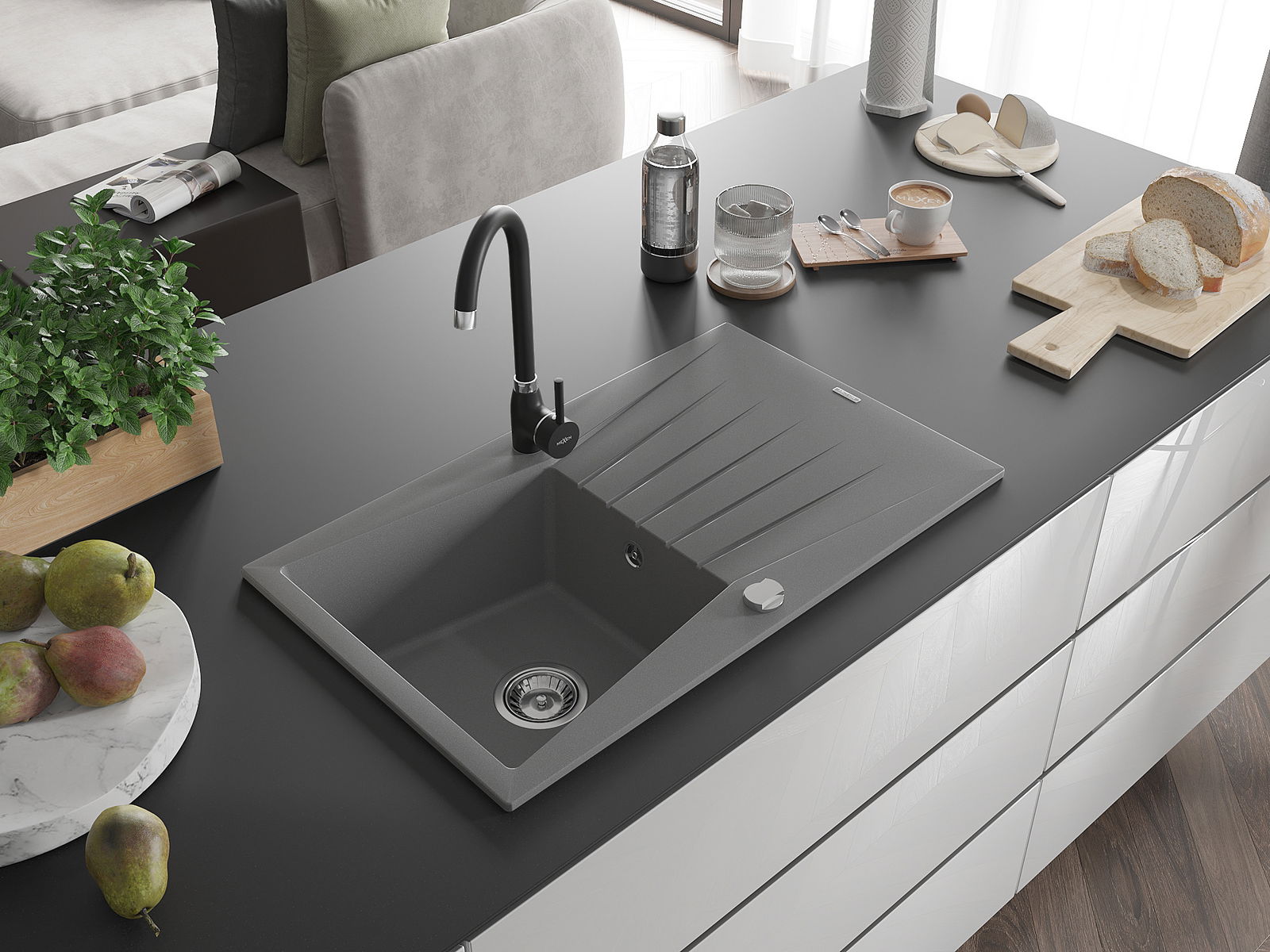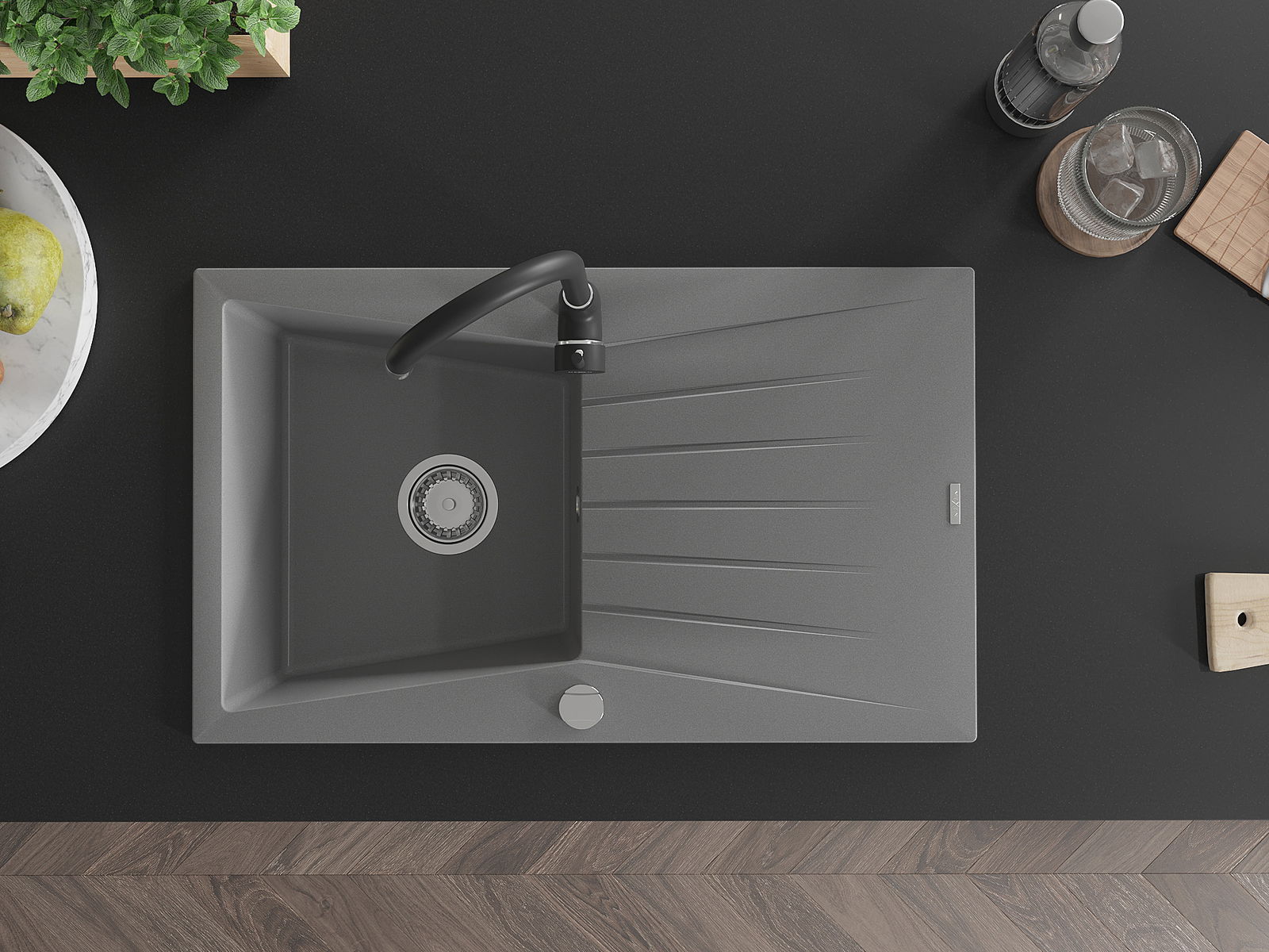 A mosogató kiváló minőségű gránitból készül. Ez egy elegáns és mindenekelőtt minden konyhához praktikus kiegészítés, stílusától függetlenül. A kiváló minőségű és a gránit tartósság biztosítja a sok éves használatát.