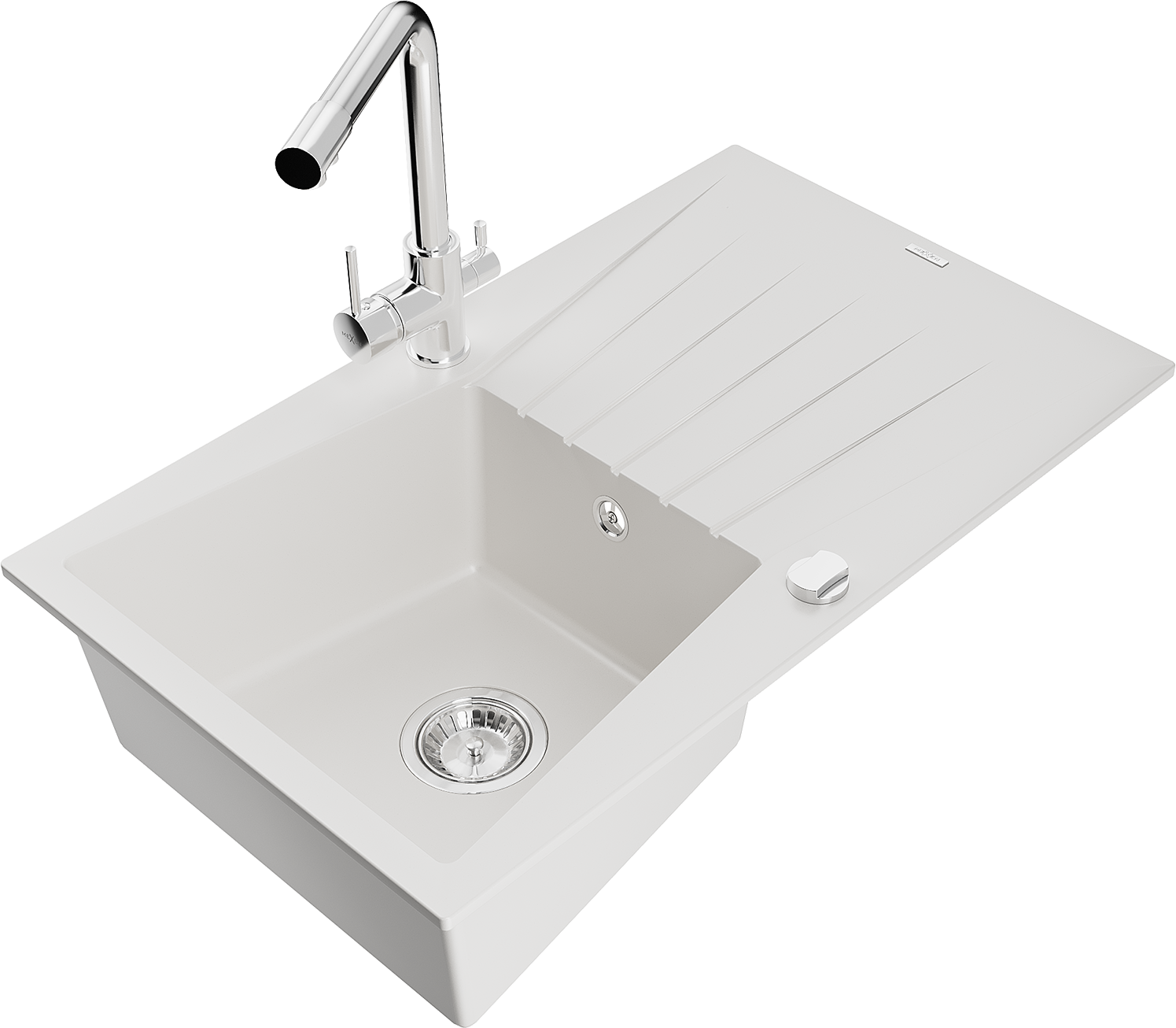 A mosogató magas minőségű gránitból készült. Elegáns, de mindenekelőtt praktikus kiegészítője minden konyhának, függetlenül annak stílusától. A gránit magas minősége és tartóssága hosszú távú használatot biztosít.