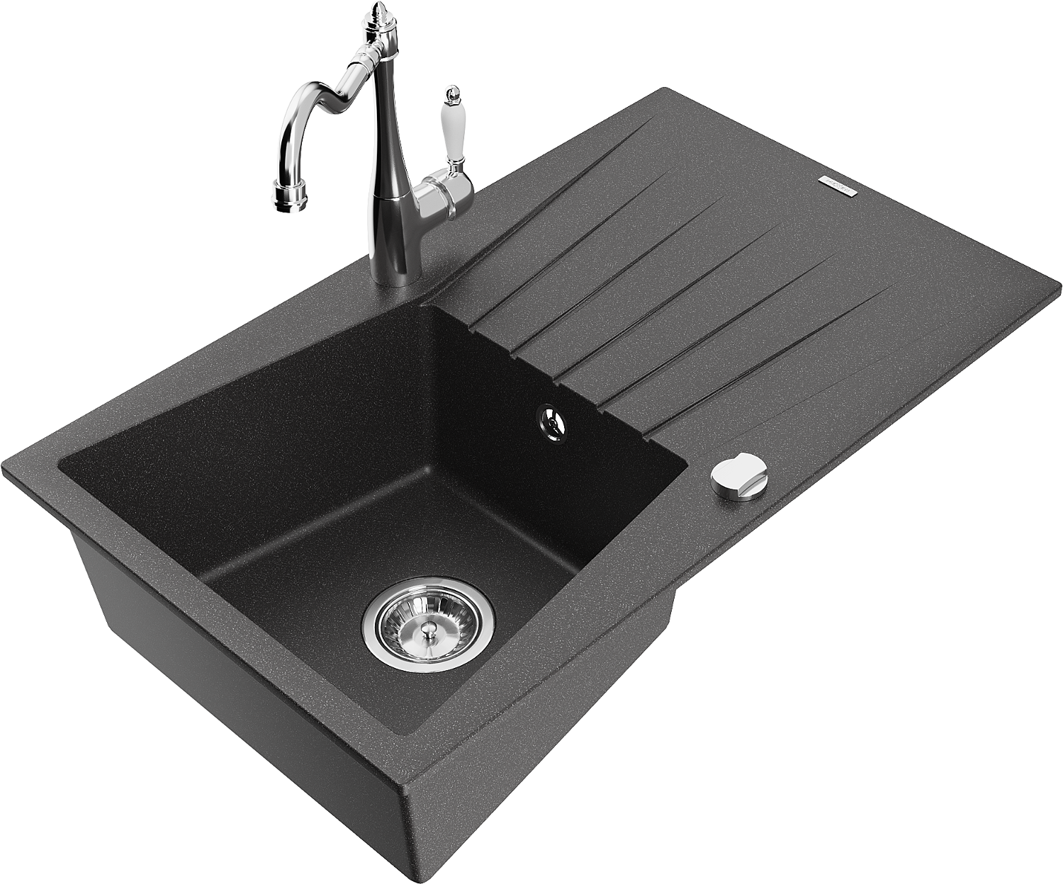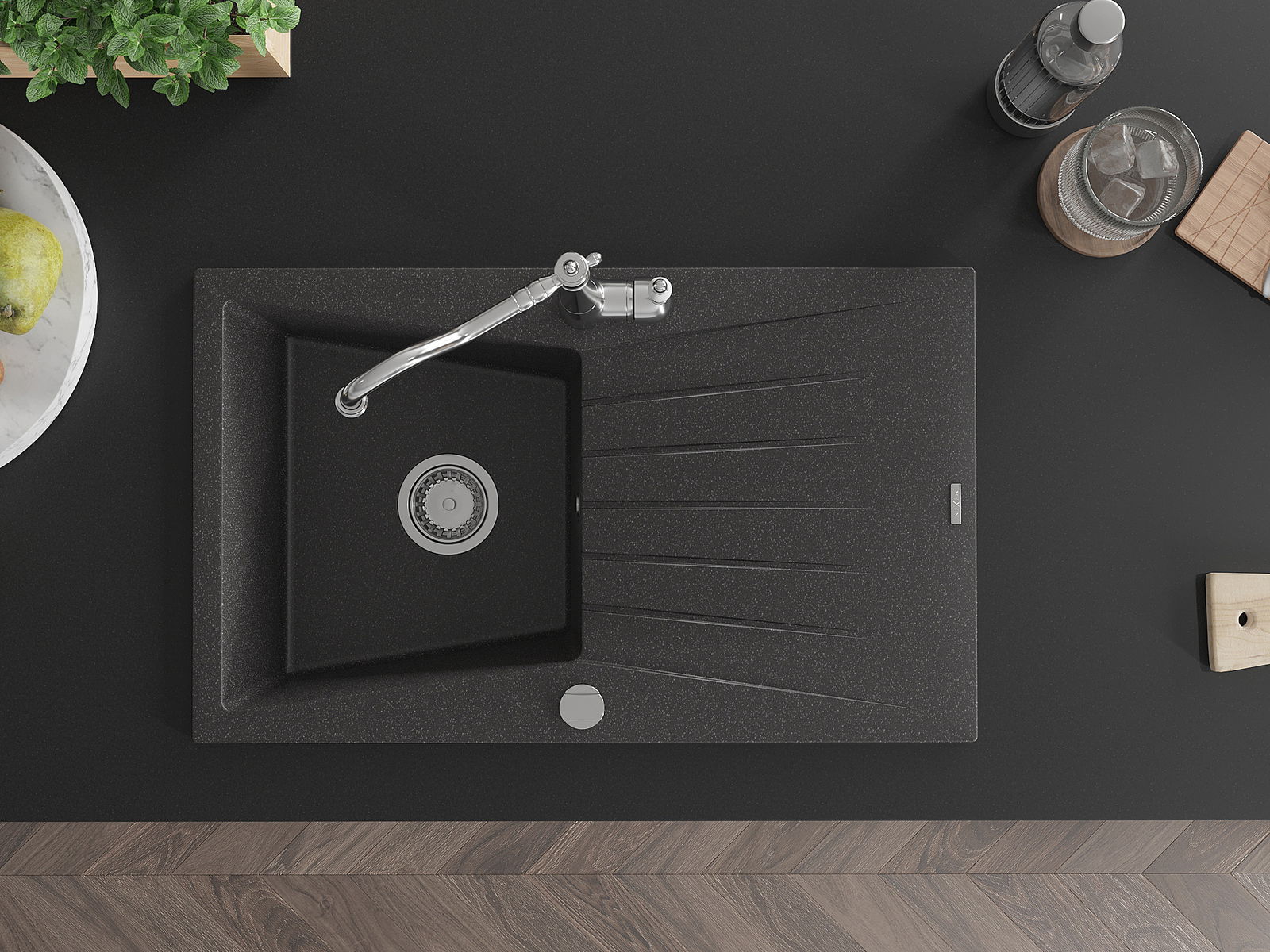 A mosogató magas minőségű gránitból készült. Elegáns, de mindenekelőtt praktikus kiegészítője minden konyhának, függetlenül annak stílusától. A gránit magas minősége és tartóssága hosszú távú használatot biztosít.
