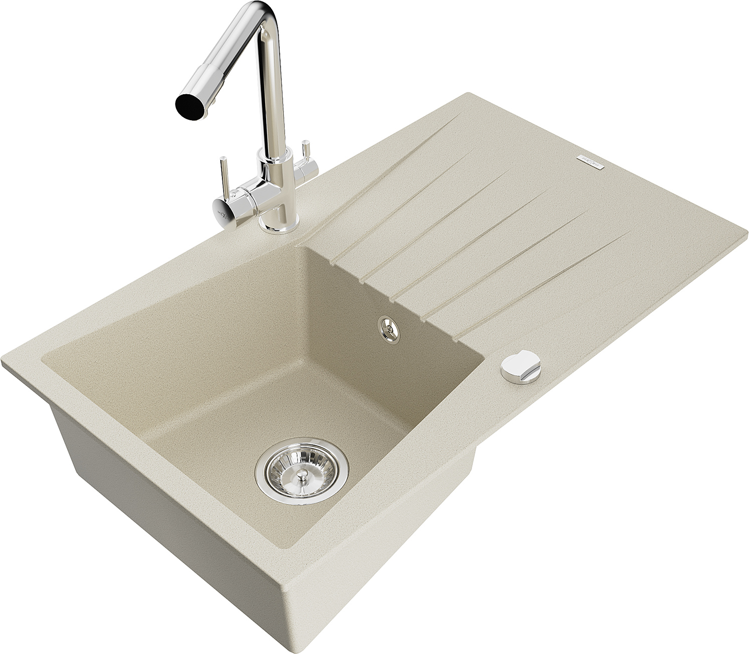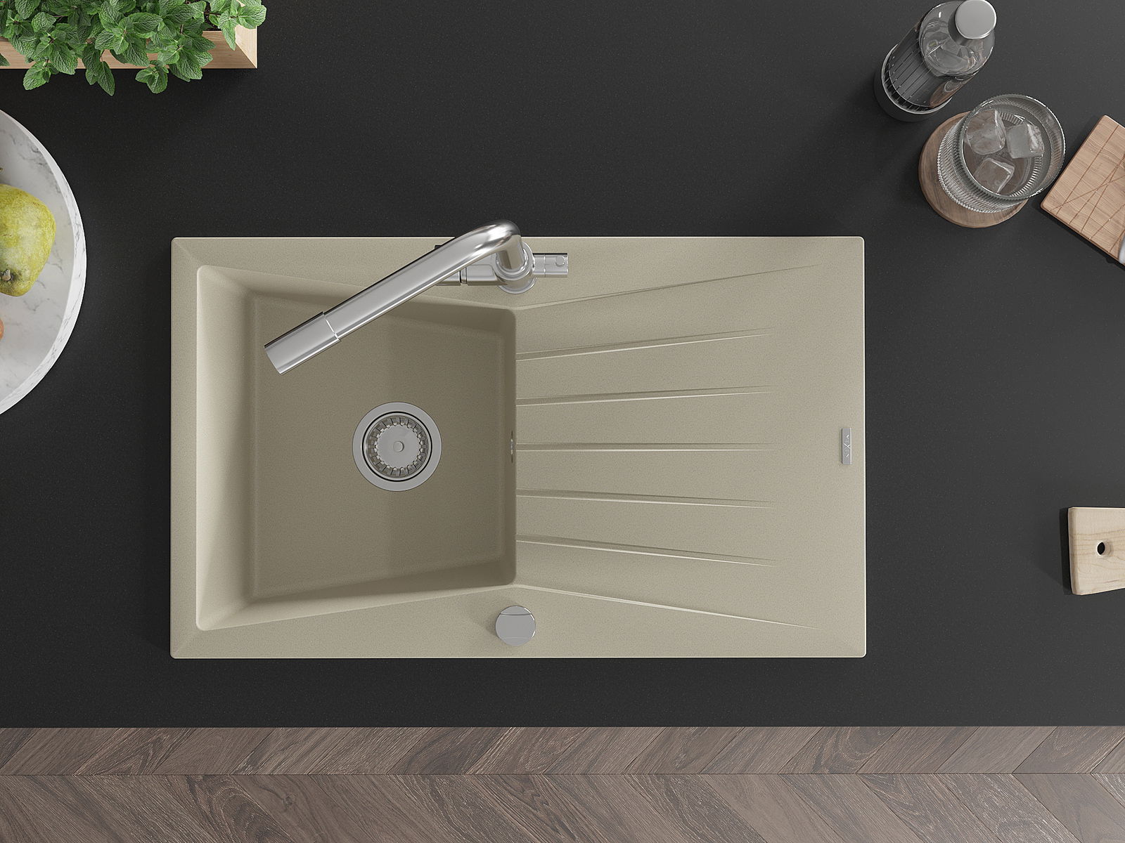A mosogató magas minőségű gránitból készült. Elegáns, de mindenekelőtt praktikus kiegészítője minden konyhának, függetlenül annak stílusától. A gránit magas minősége és tartóssága hosszú távú használatot biztosít.