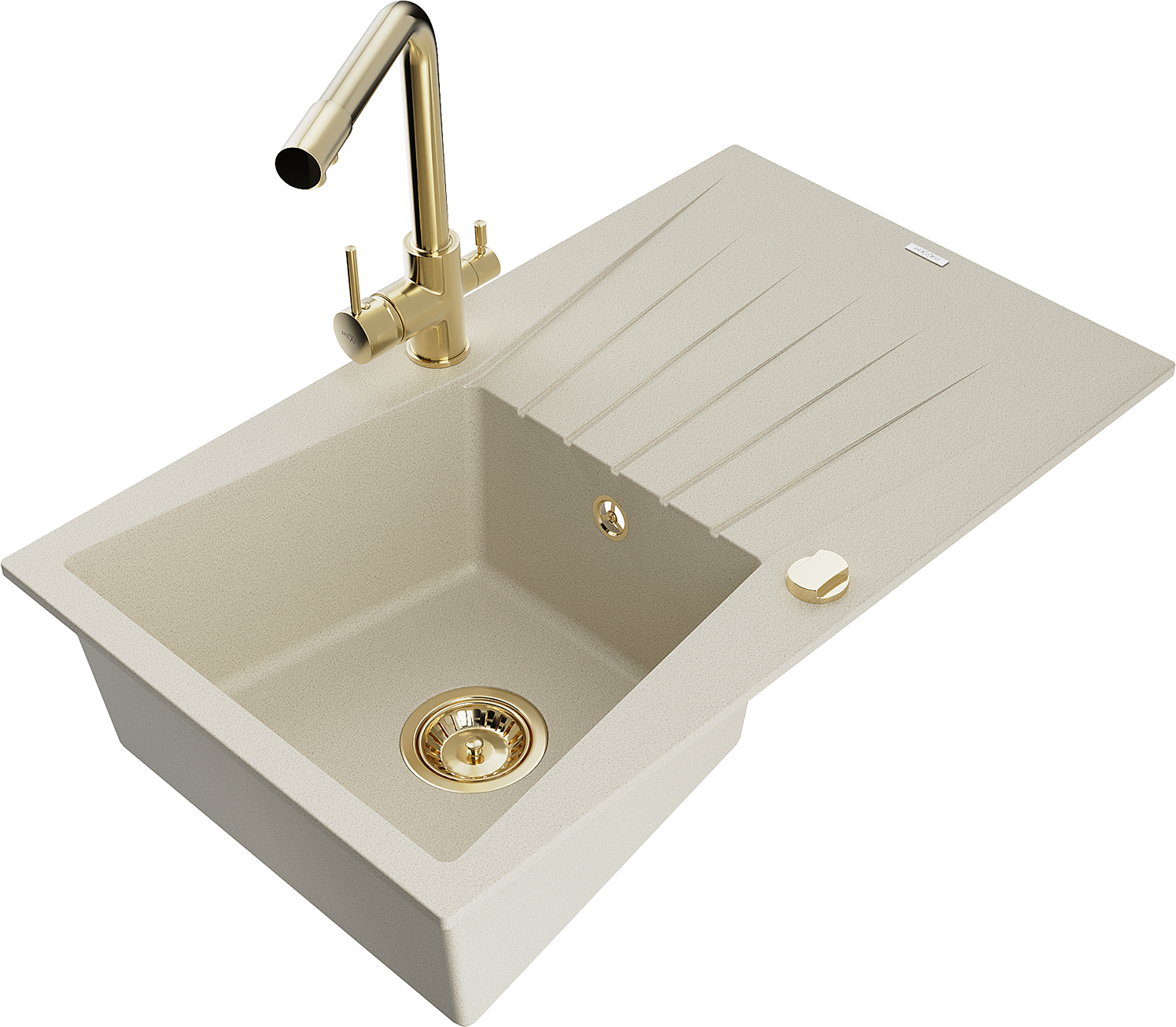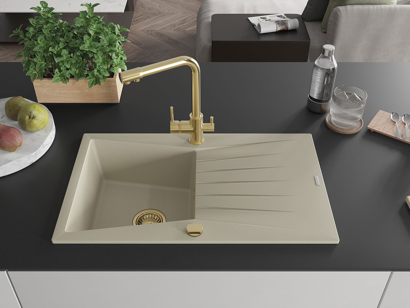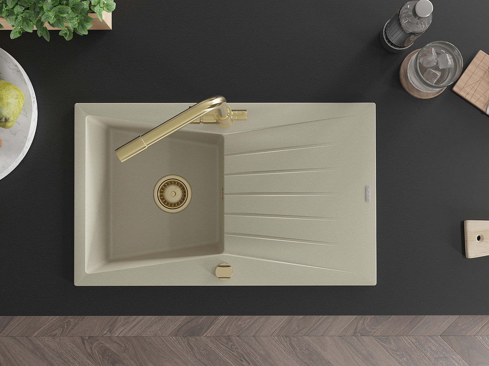 Mexen Cesar egymedencés gránit mosogató csepegtetővel és Duero konyhai csapteleppel, bézs - 6514-69-671600-50