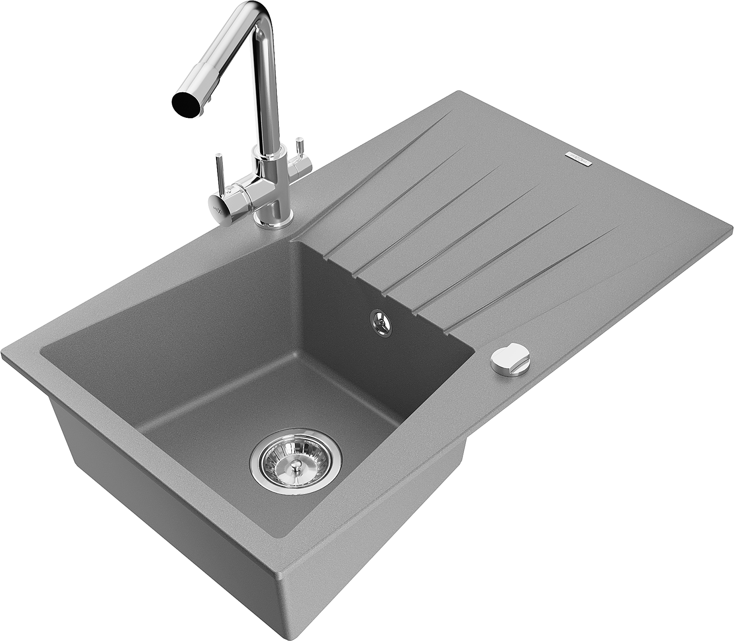 A mosogató magas minőségű gránitból készült. Elegáns, de mindenekelőtt praktikus kiegészítője minden konyhának, függetlenül annak stílusától. A gránit magas minősége és tartóssága hosszú távú használatot biztosít.