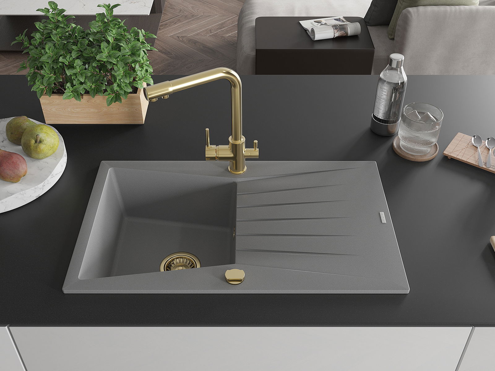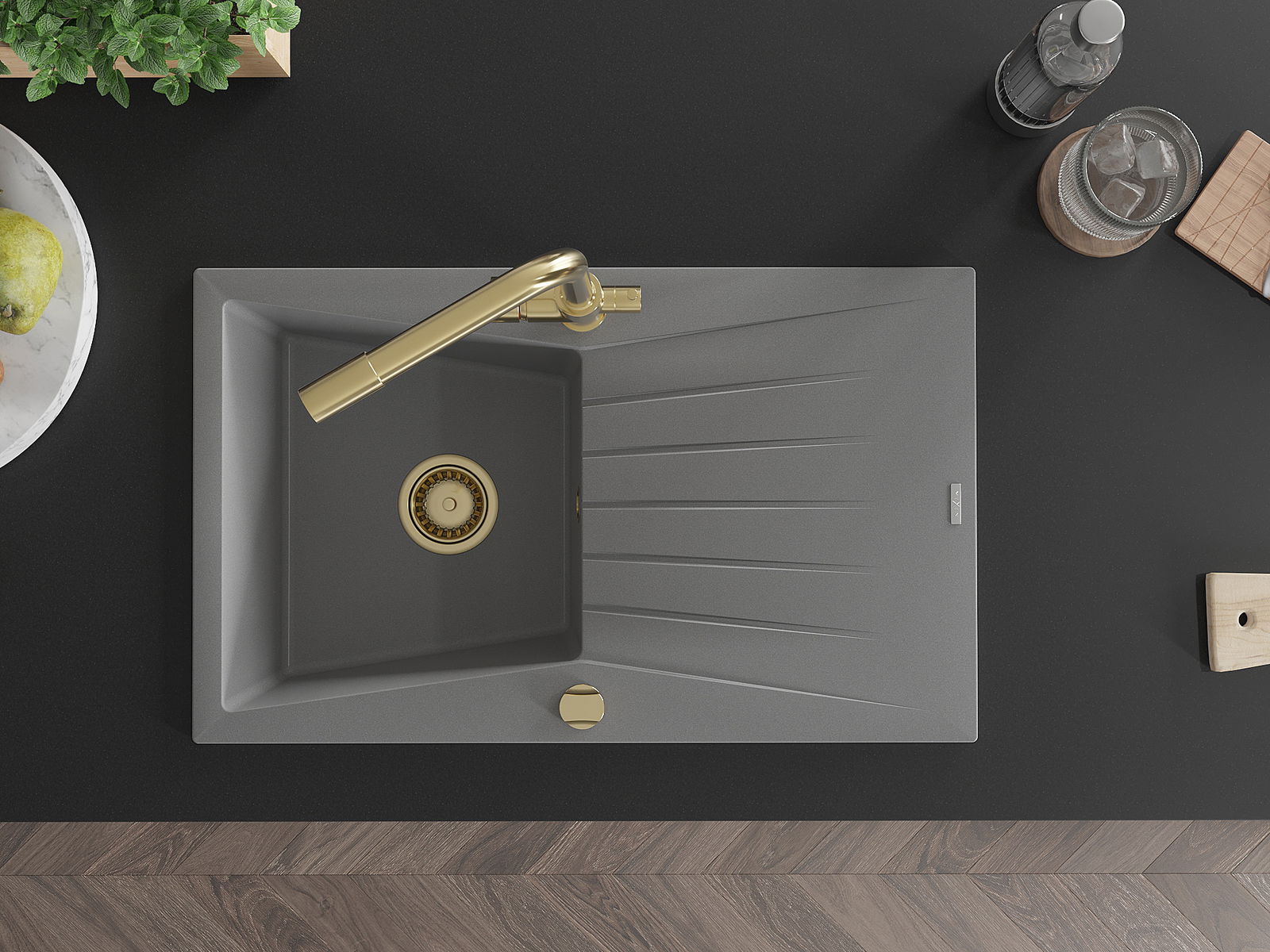 A mosogató magas minőségű gránitból készült. Elegáns, de mindenekelőtt praktikus kiegészítője minden konyhának, függetlenül annak stílusától. A gránit magas minősége és tartóssága hosszú távú használatot biztosít.