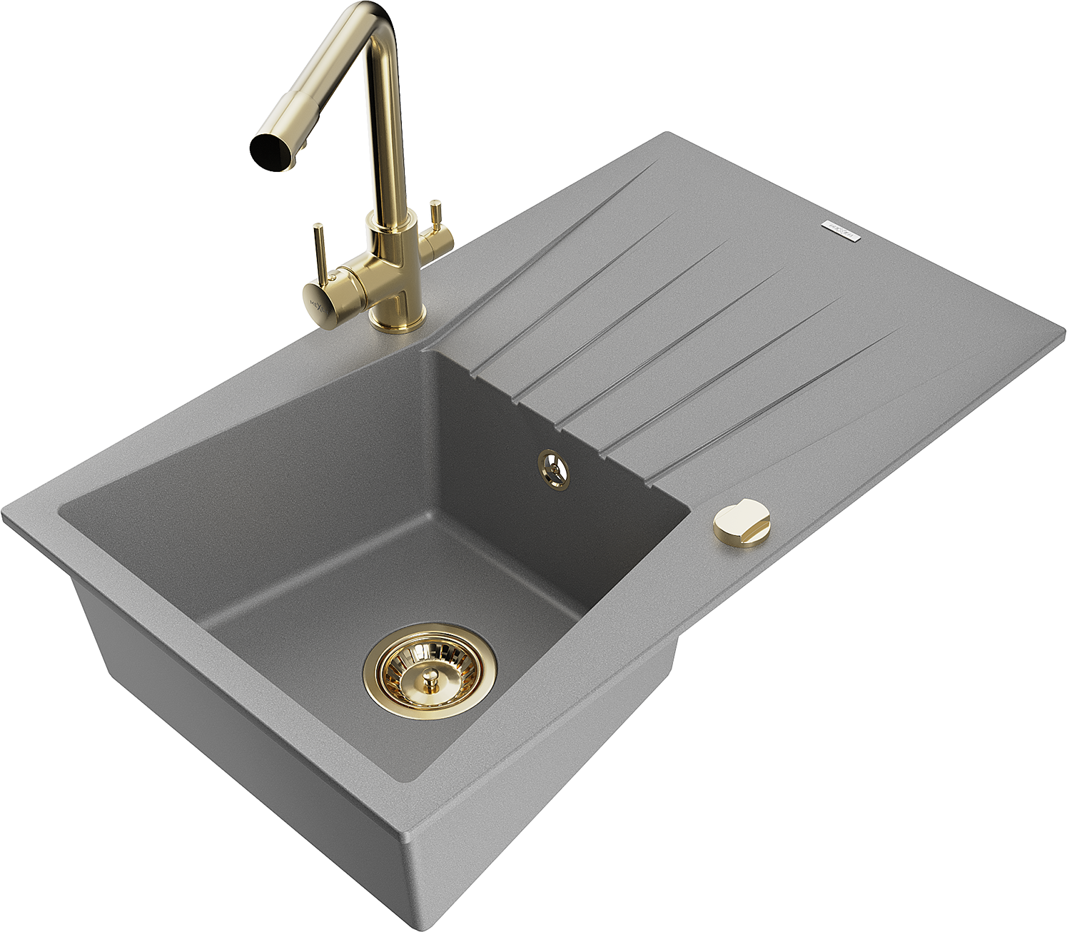Mexen Cesar egykamrás gránit mosogató csepptálcával és Duero konyhai csapteleppel, szürke - 6514-71-671600-50