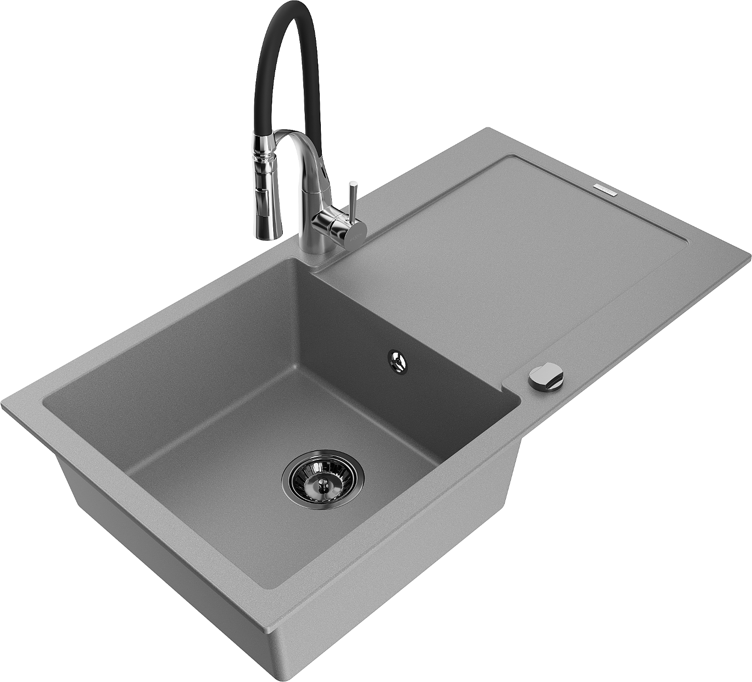 Mexen Leo 1 rekeszes gránit mosogató csepegtetővel és Aster konyhai csappal, szürke - 6501-71-73450-07-B