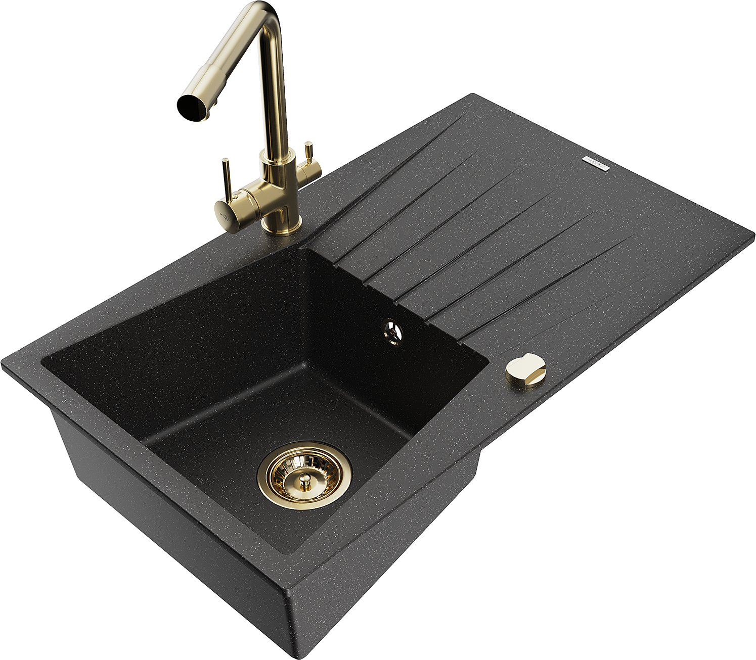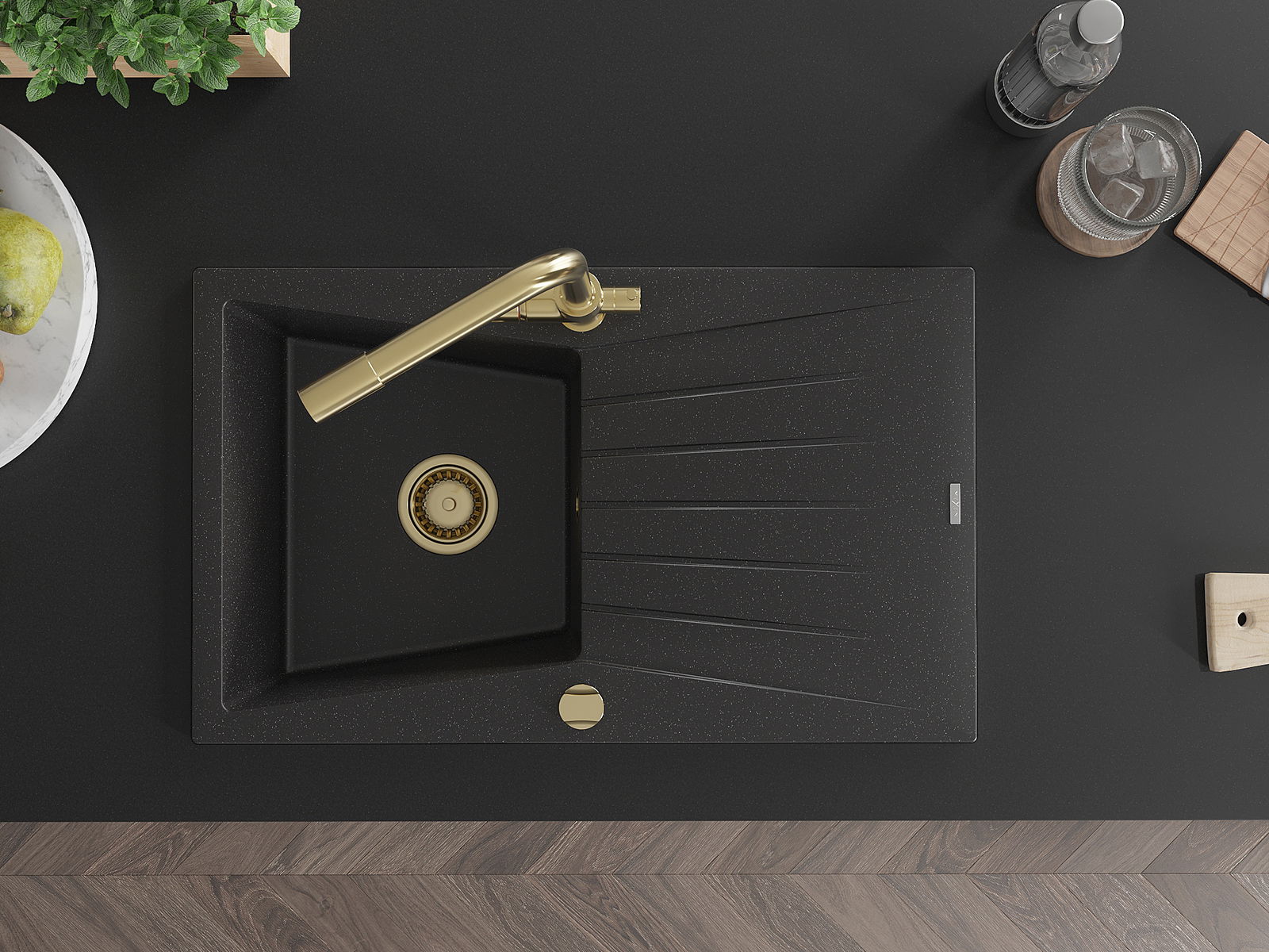 A mosogató magas minőségű gránitból készült. Elegáns, de mindenekelőtt praktikus kiegészítője minden konyhának, függetlenül annak stílusától. A gránit magas minősége és tartóssága hosszú távú használatot biztosít.