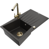 Mexen Cesar 1-medencés gránit mosogató csepegtetővel és Duero konyhai csapteleppel, fekete/ezüst metál - 6514-73-671600-50