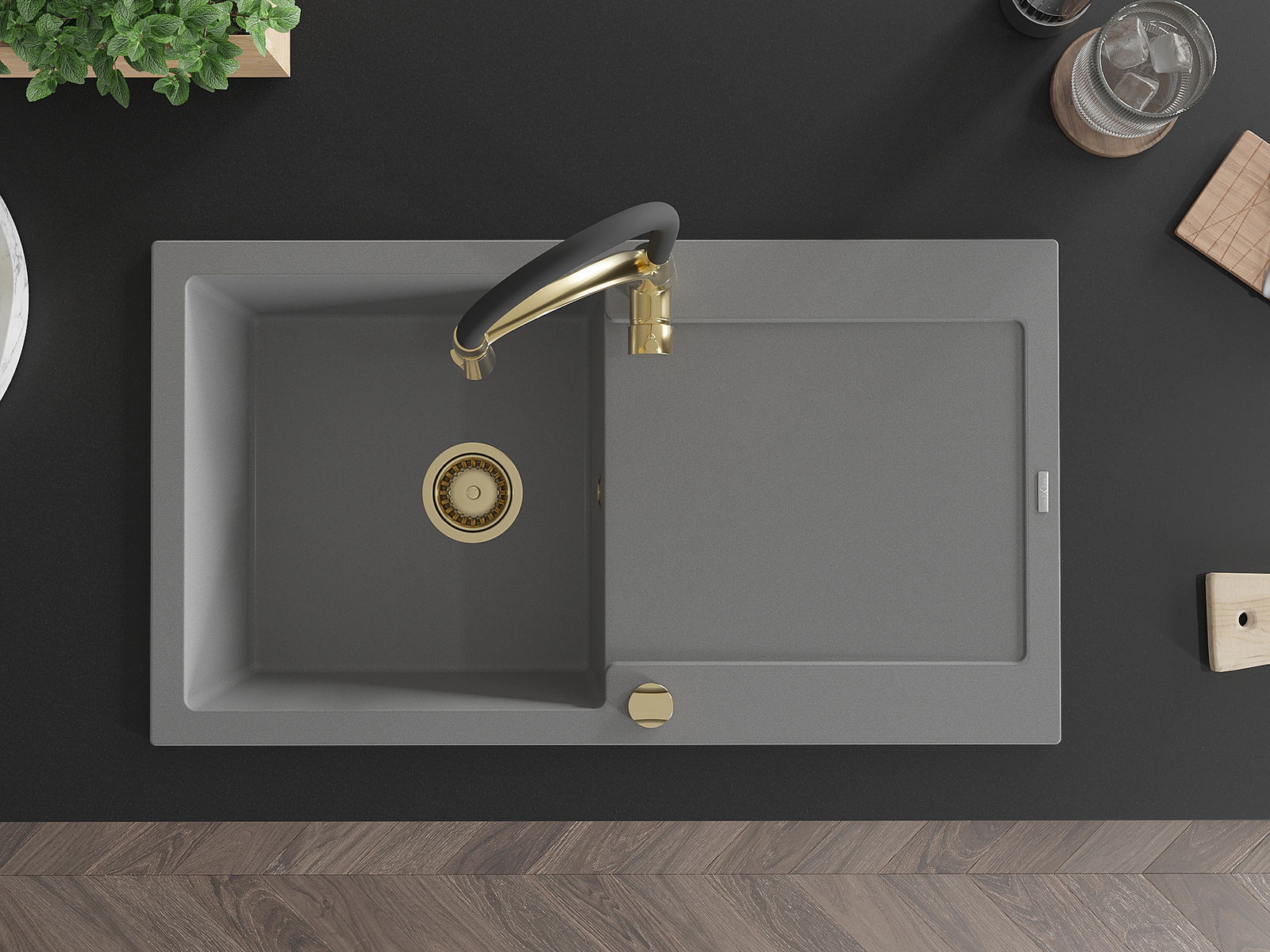 Mexen Leo egymedencés gránit mosogató csepegtetővel és Aster konyhai csappal, szürke - 6501-71-73450-57-G