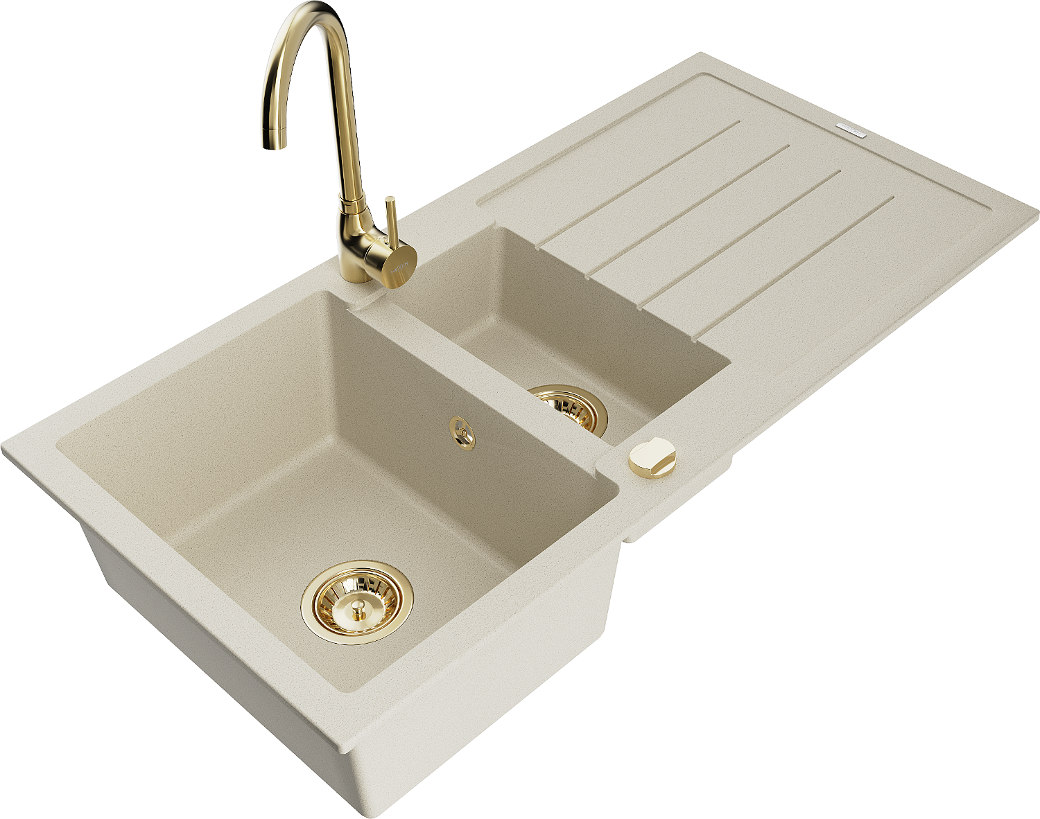 Mexen Andres 1,5-medencés gránit mosogató lefolyóval és Telma konyhai csappal, bézs - 6515-69-670200-50