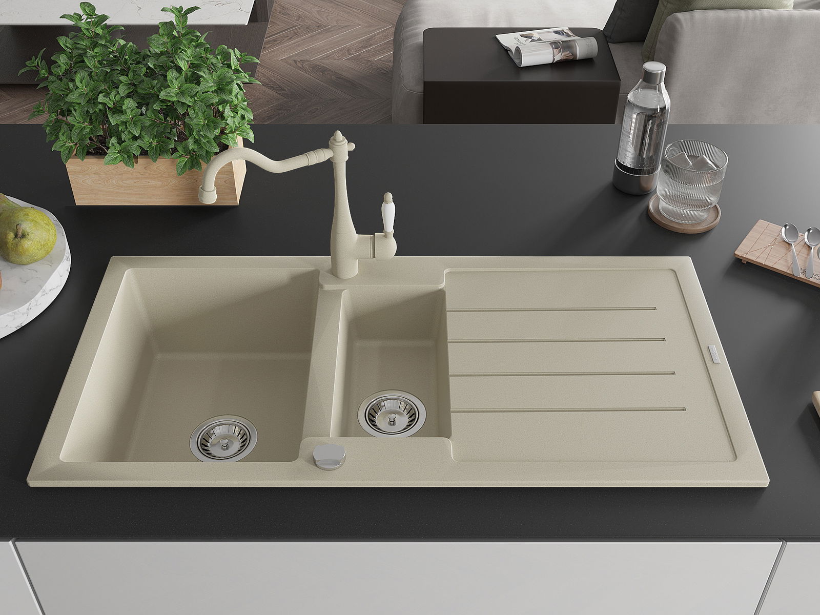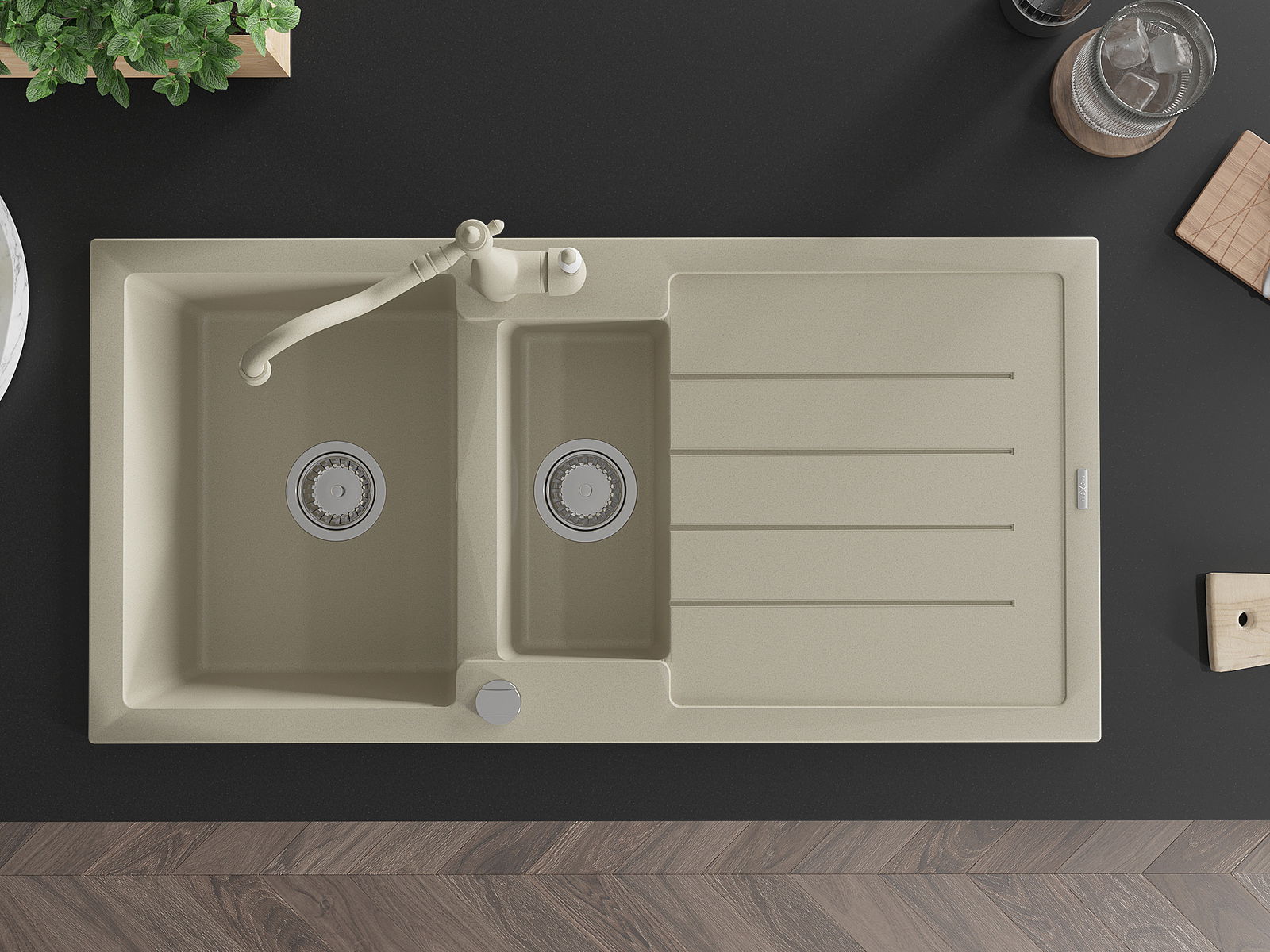 A mosogató felülete ellenáll a foltoknak és a elszíneződésnek, amelynek köszönhetően könnyű megtisztítani és hosszú ideig megtartja színét. Esztétikai és gyakorlatilag kiegészítve minden konyhát.