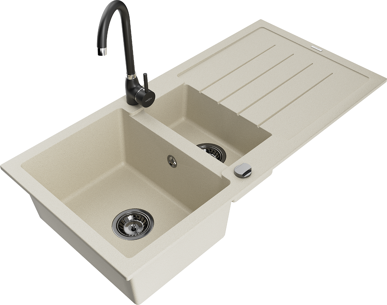Mexen Andres gránit mosogató 1,5-medencés csepegtetővel és Telma konyhai csapteleppel, bézs - 6515-69-670200-70