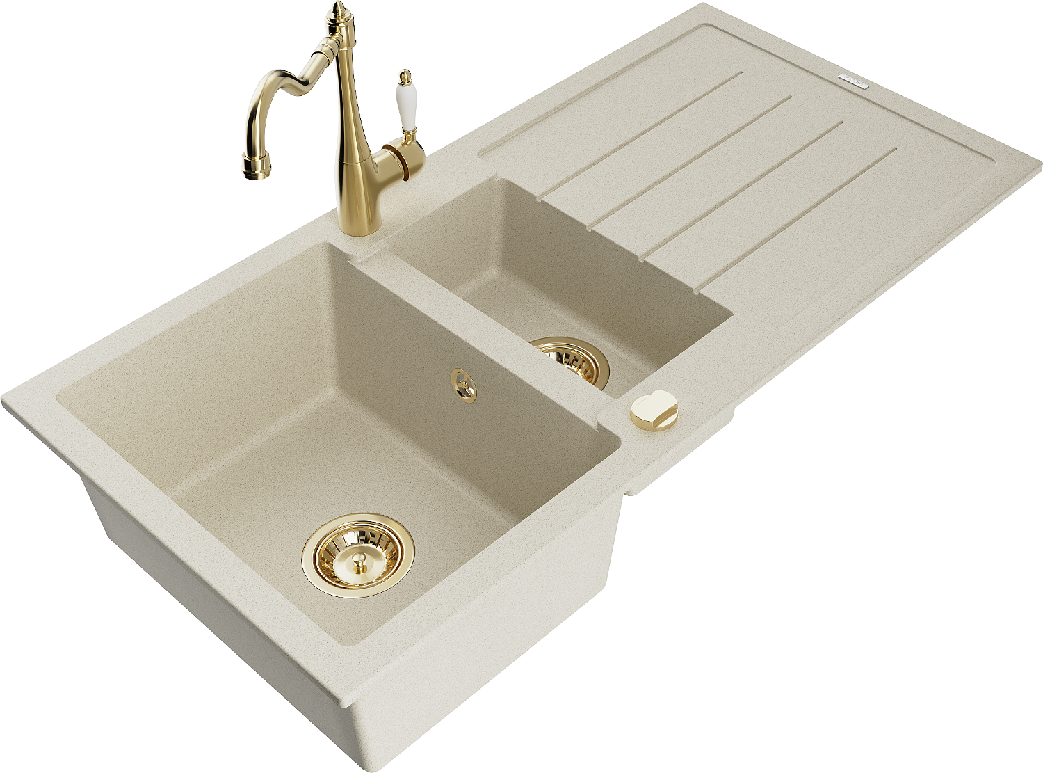Mexen Andres gránit mosogató 1,5 medencés csepegtetővel és Carla konyhai csapteleppel, bézs - 6515-69-670700-50