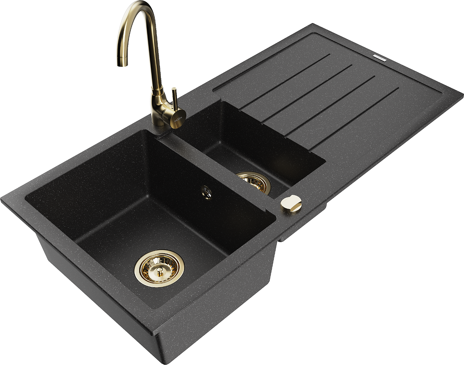 Mexen Andres gránit mosogató 1,5-medencés csepegtetővel és Telma konyhai csappal, fekete/ezüst - 6515-73-670200-50