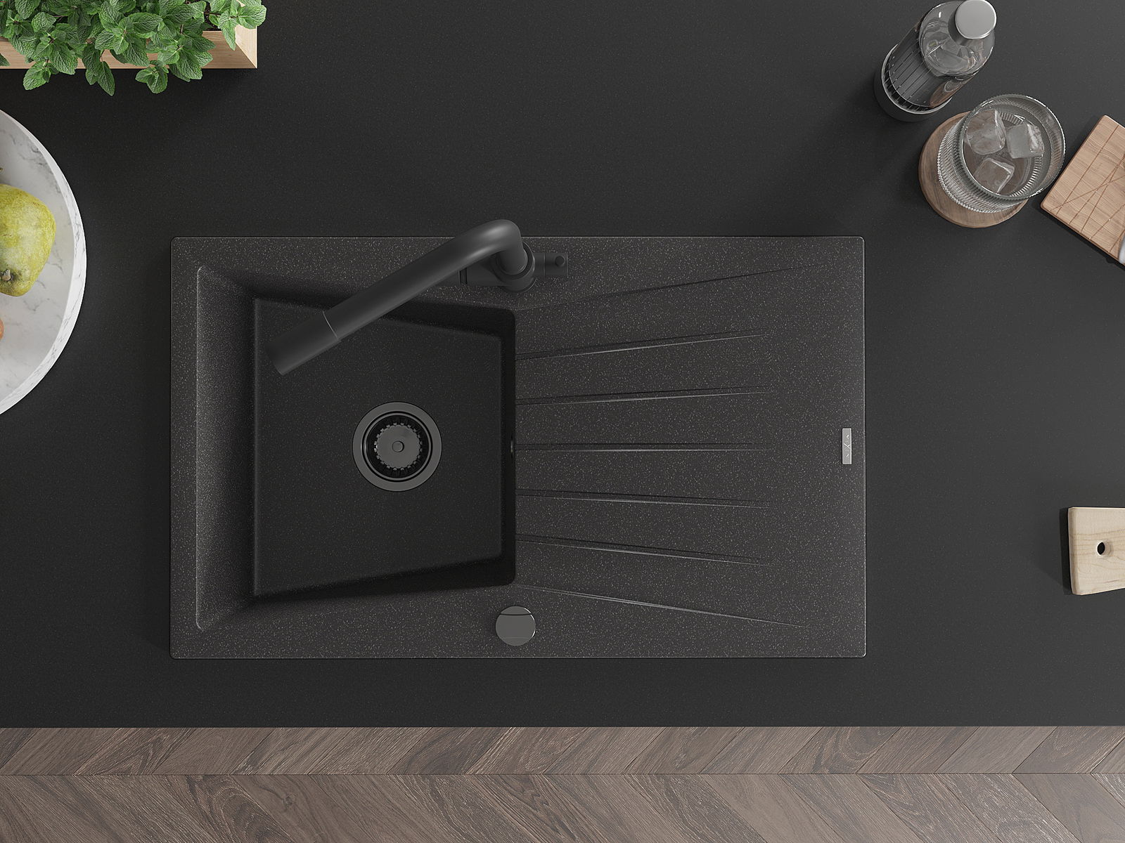 A mosogató magas minőségű gránitból készült. Elegáns, de mindenekelőtt praktikus kiegészítője minden konyhának, függetlenül annak stílusától. A gránit magas minősége és tartóssága hosszú távú használatot biztosít.
