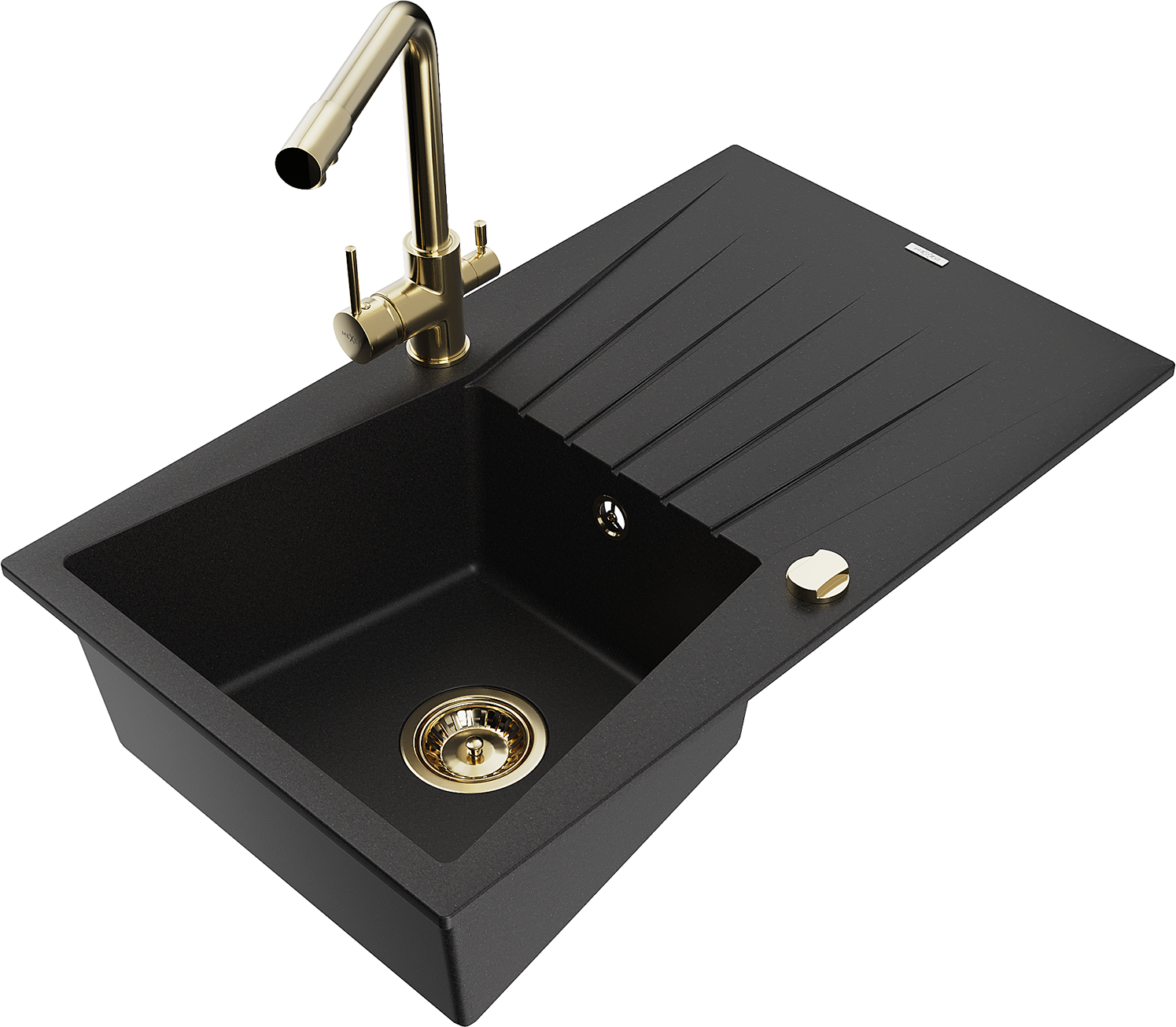Mexen Cesar 1-medencés gránit mosogató csepegtetővel és Duero konyhai csapteleppel, fekete - 6514-77-671600-50