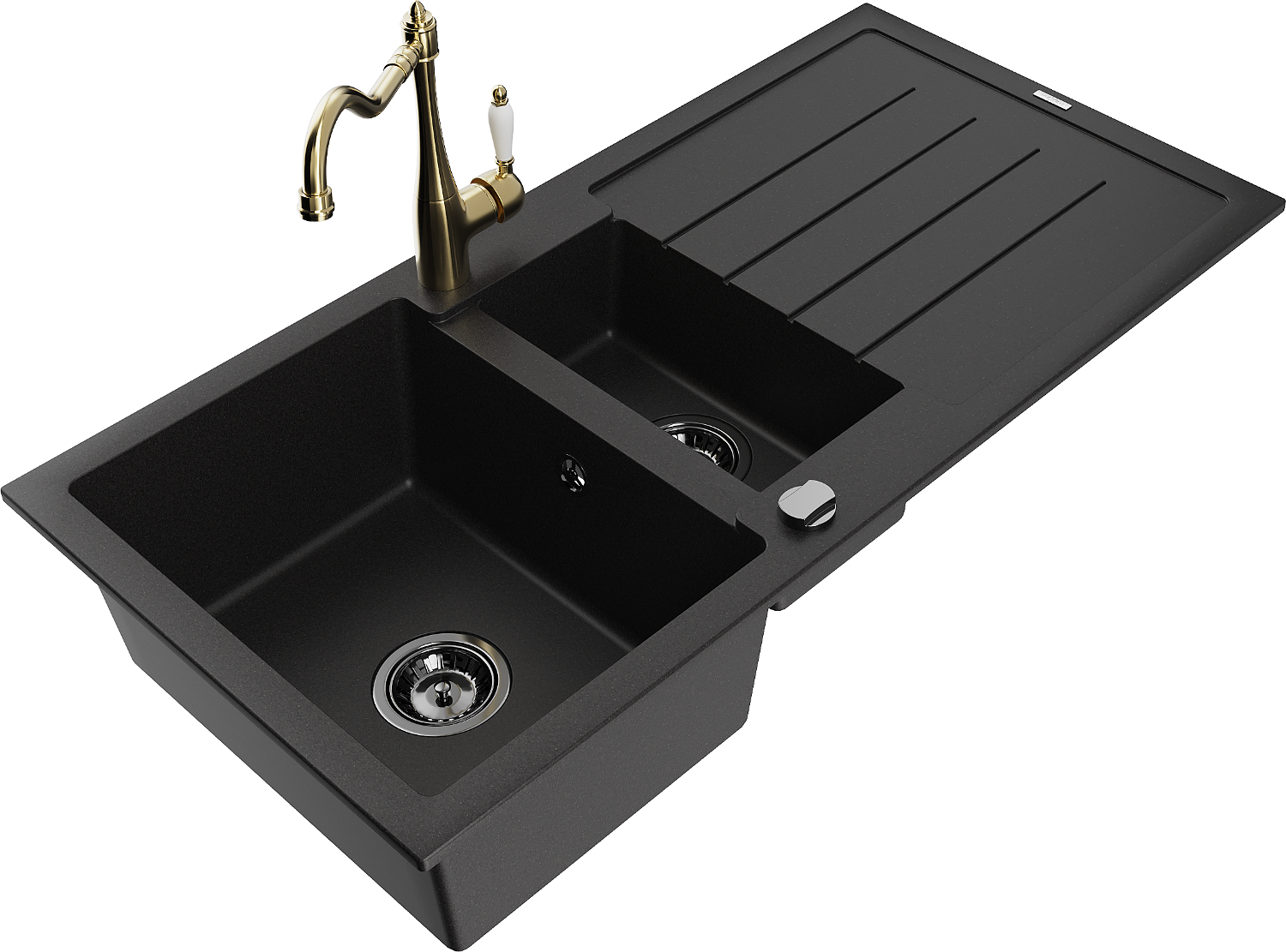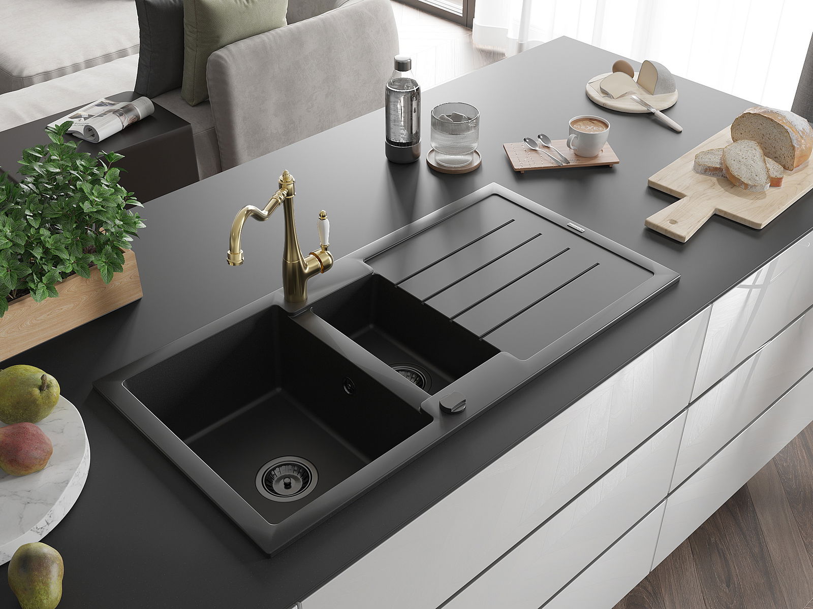 A mosogató magas minőségű gránitból készült. Elegáns, de mindenekelőtt praktikus kiegészítője minden konyhának, függetlenül annak stílusától. A gránit magas minősége és tartóssága hosszú távú használatot biztosít.
