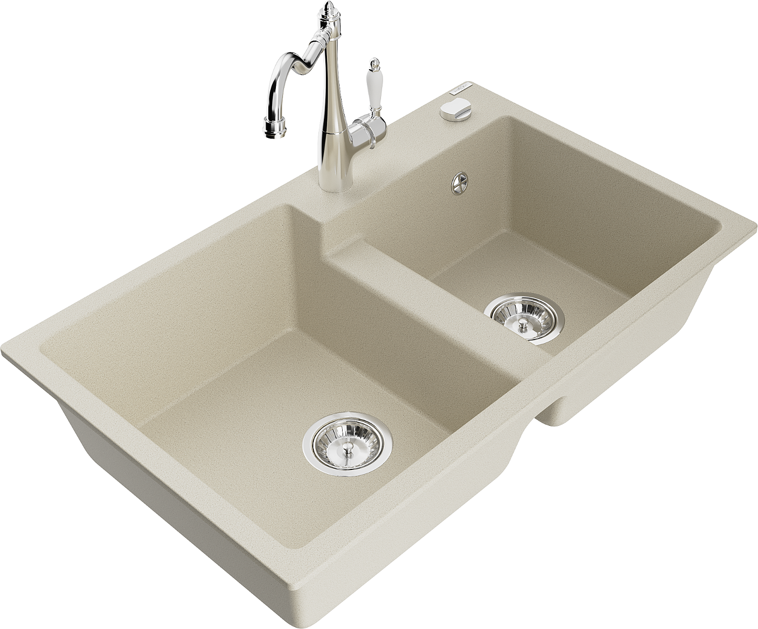 Mexen Tomas gránit mosogató 2-medencés, Carla konyhai csapteleppel, bézs - 6516-69-670700-00