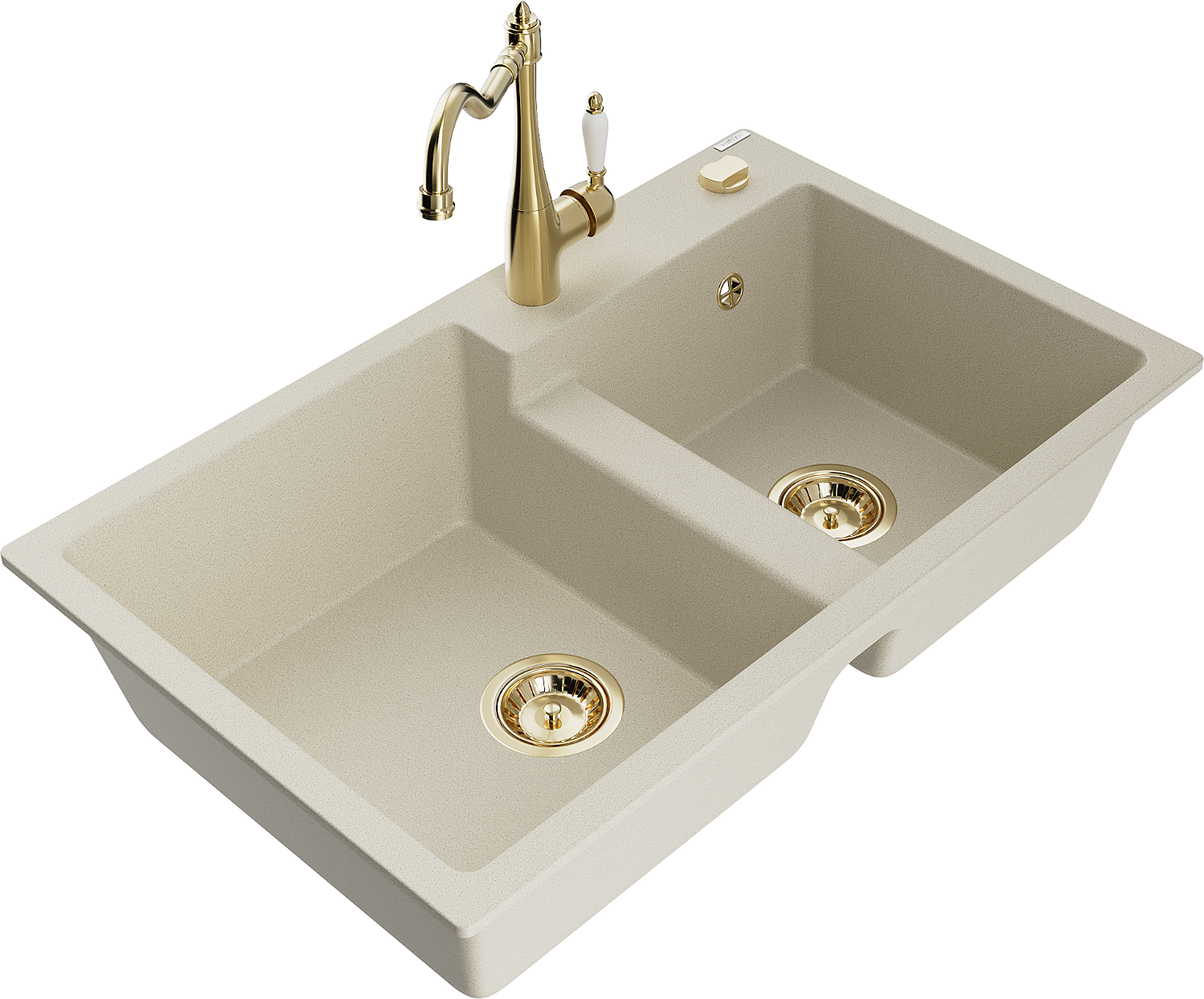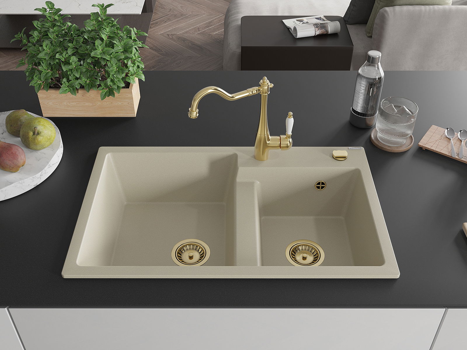 Mexen Tomas gránit mosogató 2 rekeszes konyhai csapteleppel Carla, bézs - 6516-69-670700-50