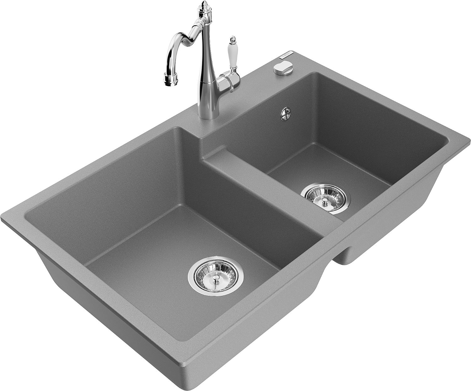 Mexen Tomas gránit kétmedencés mosogató Carla konyhai csappal, szürke - 6516-71-670700-00
