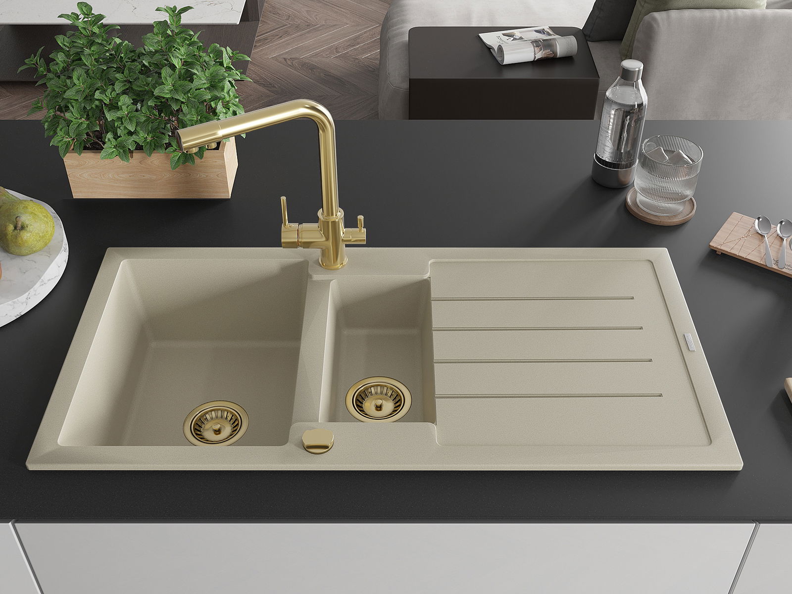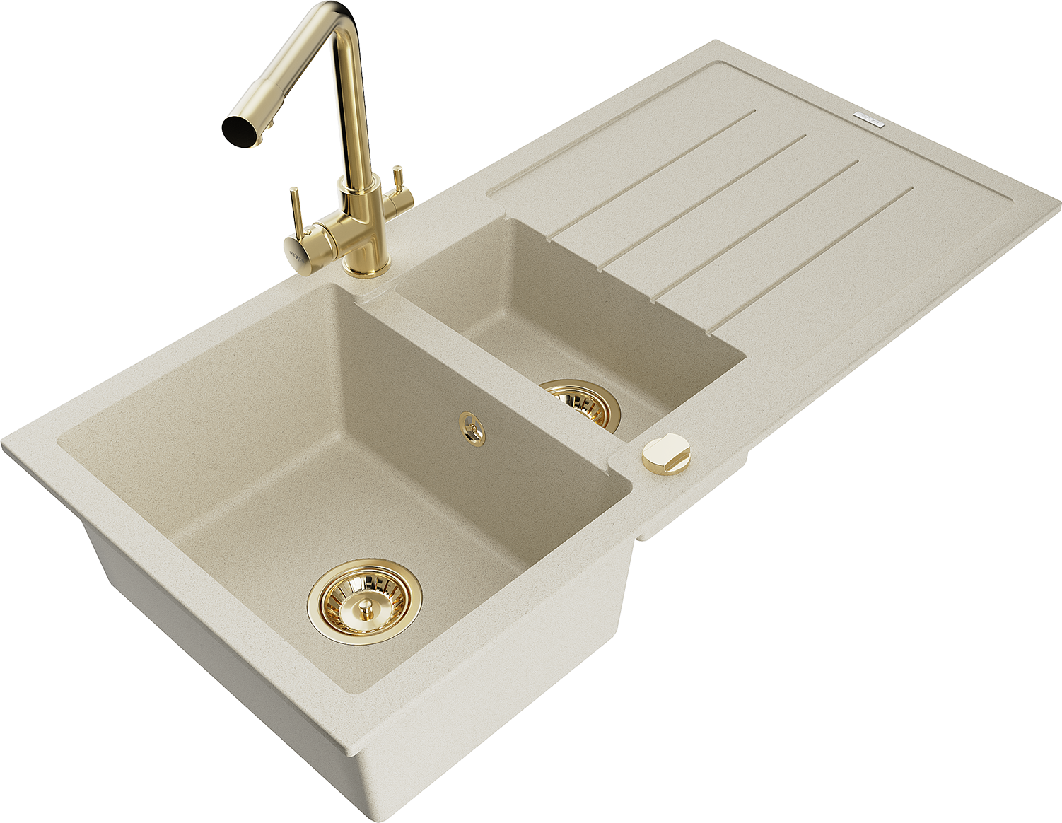 Mexen Andres 1,5 rekeszes gránit mosogató lefolyóval és Duero konyhai csapteleppel, bézs - 6515-69-671600-50