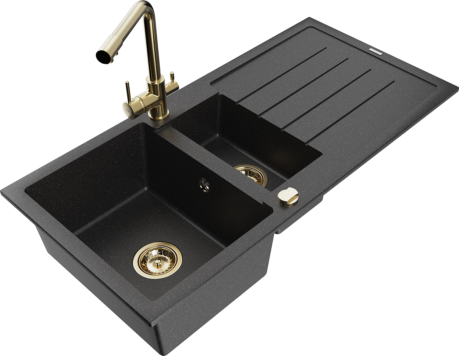 Mexen Andres 1,5 rekeszes gránit mosogató csepegtetővel és Duero konyhai csapteleppel, fekete/ezüst - 6515-73-671600-50