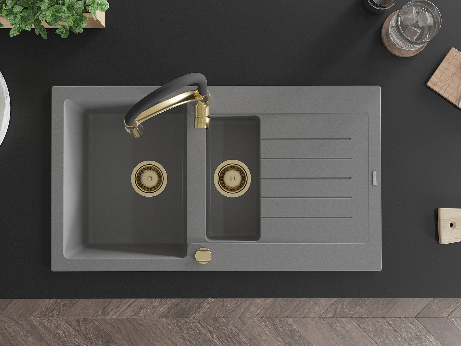 A mosogató kiváló minőségű gránitból készül. Ez egy elegáns és mindenekelőtt minden konyhához praktikus kiegészítés, stílusától függetlenül. A kiváló minőségű és a gránit tartósság biztosítja a sok éves használatát.