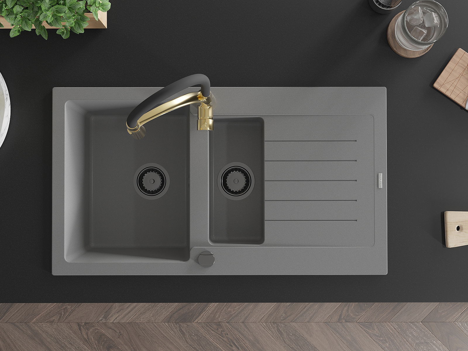 A mosogató kiváló minőségű gránitból készül. Ez egy elegáns és mindenekelőtt minden konyhához praktikus kiegészítés, stílusától függetlenül. A kiváló minőségű és a gránit tartósság biztosítja a sok éves használatát.