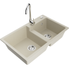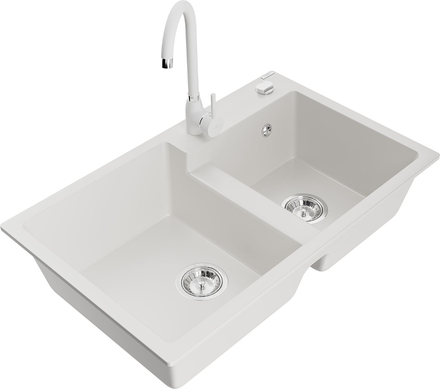Mexen Tomas gránit mosogató 2 rekeszes konyhai csappal Telma, fehér - 6516-20-670200-20