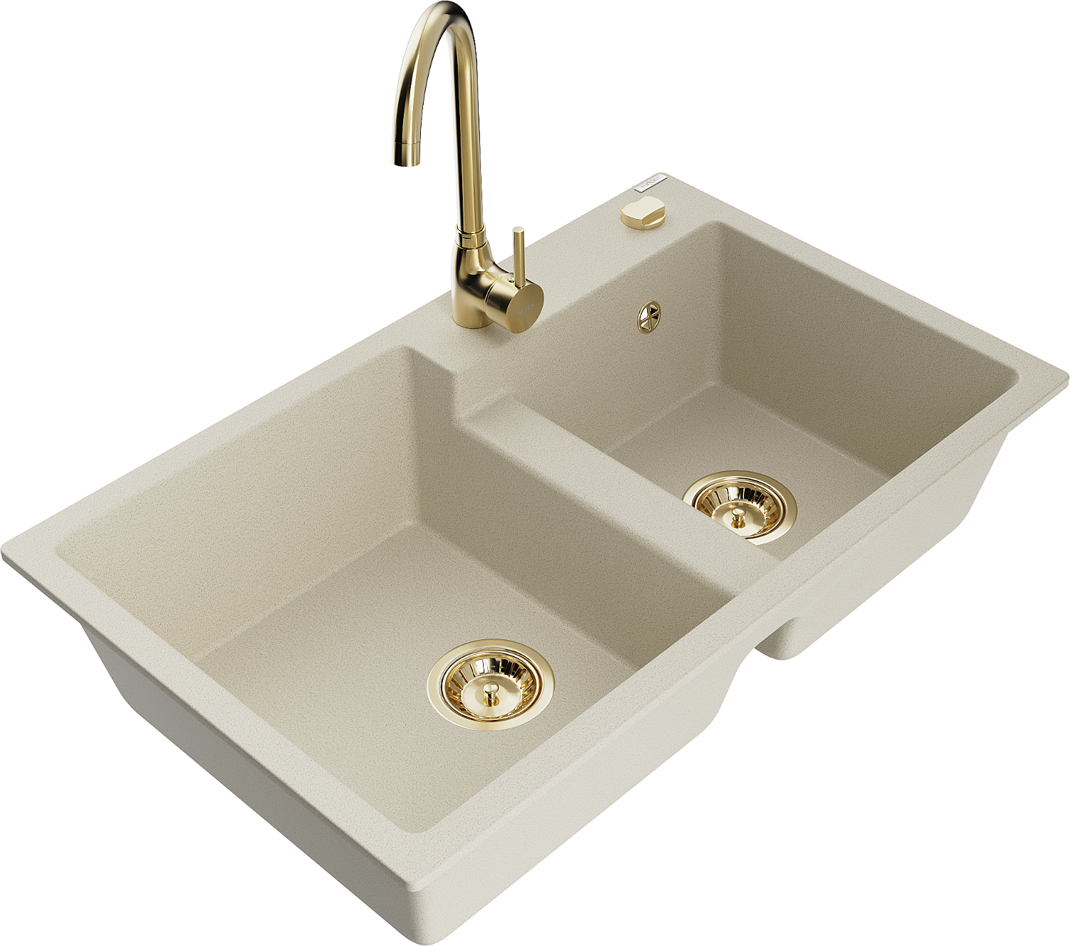 Mexen Tomas 2 rekeszes gránit mosogató Telma konyhai csappal, bézs - 6516-69-670200-50