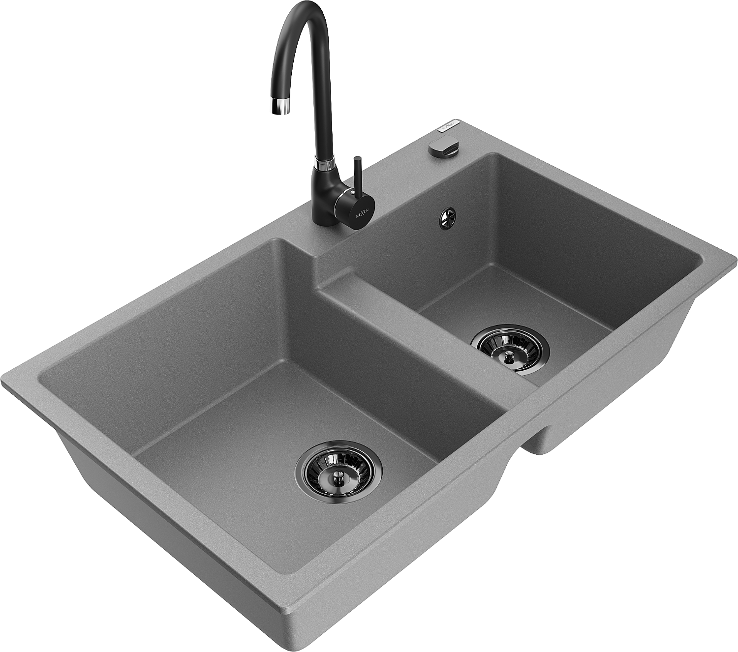 Mexen Tomas kétmedencés gránit mosogató Telma konyhai csapteleppel, szürke - 6516-71-670200-70-B