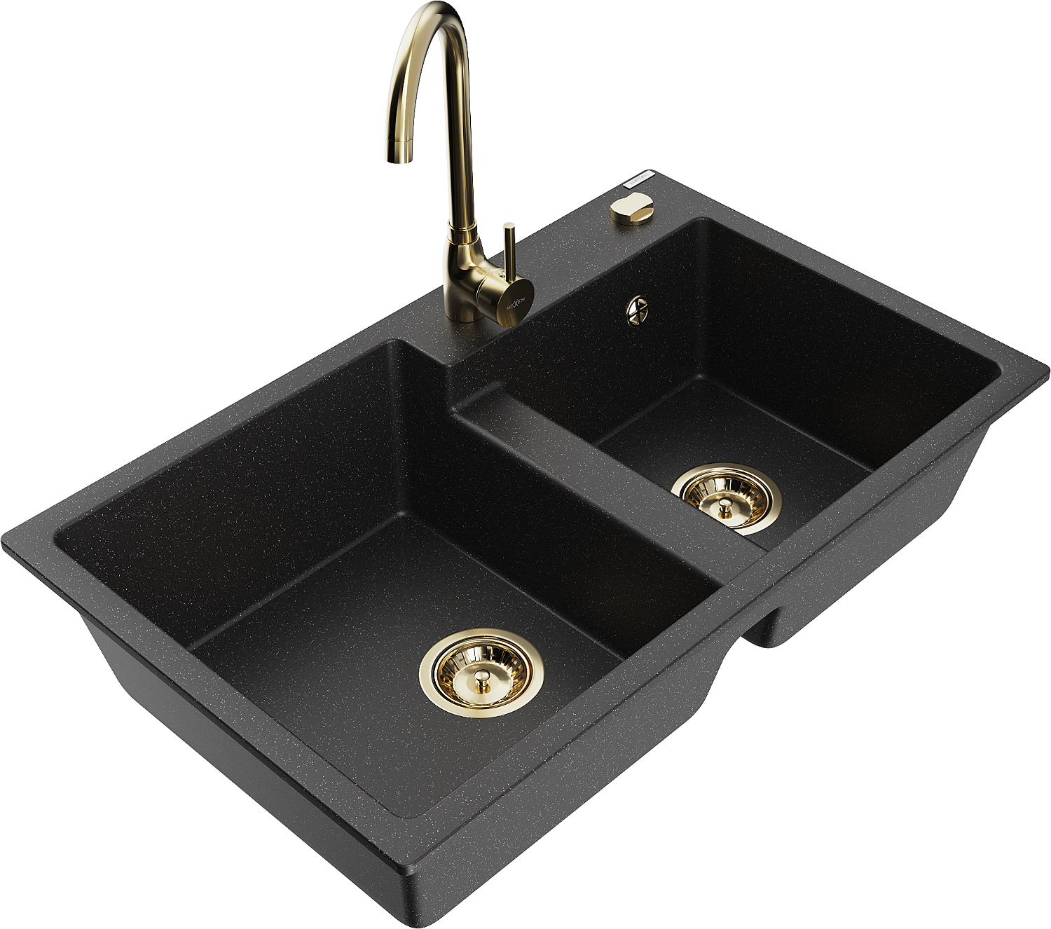 Mexen Tomas gránit 2-medencés mosogató csapteleppel Telma, fekete/ezüst metál - 6516-73-670200-50