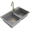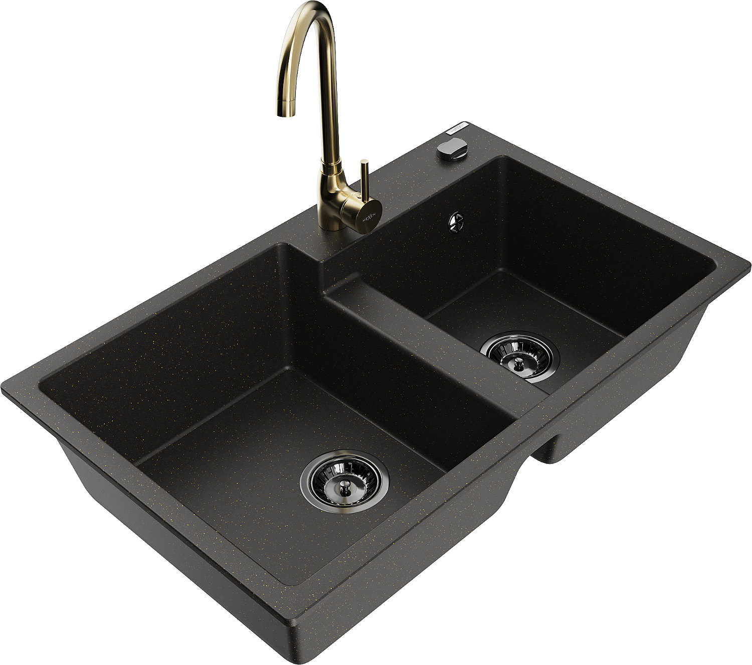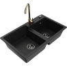 Mexen Tomas 2 rekeszes gránit mosogató Telma konyhai csappal, fekete/arany metál - 6516-75-670200-50-B