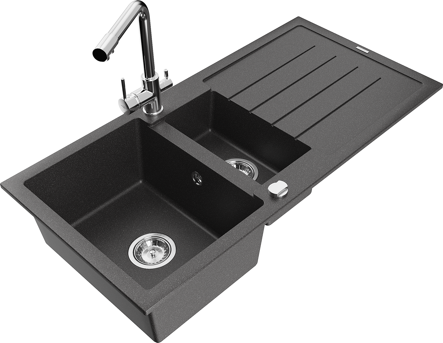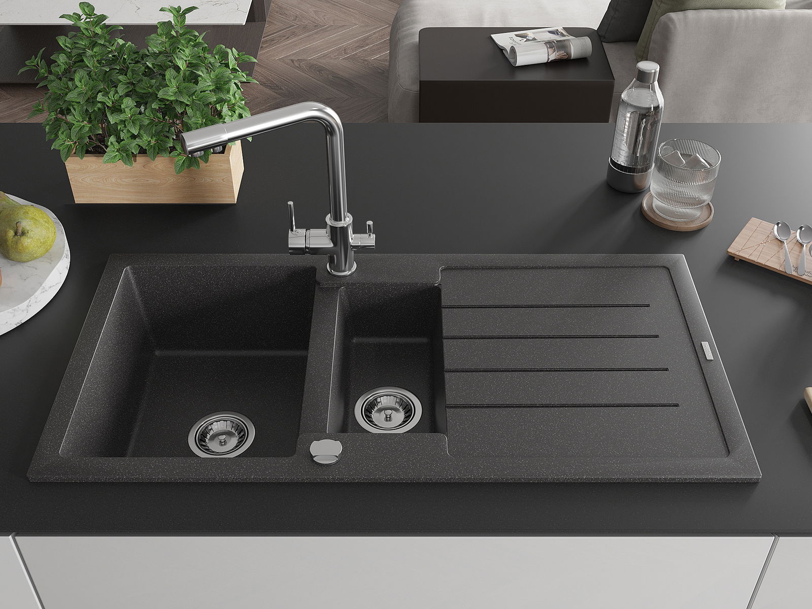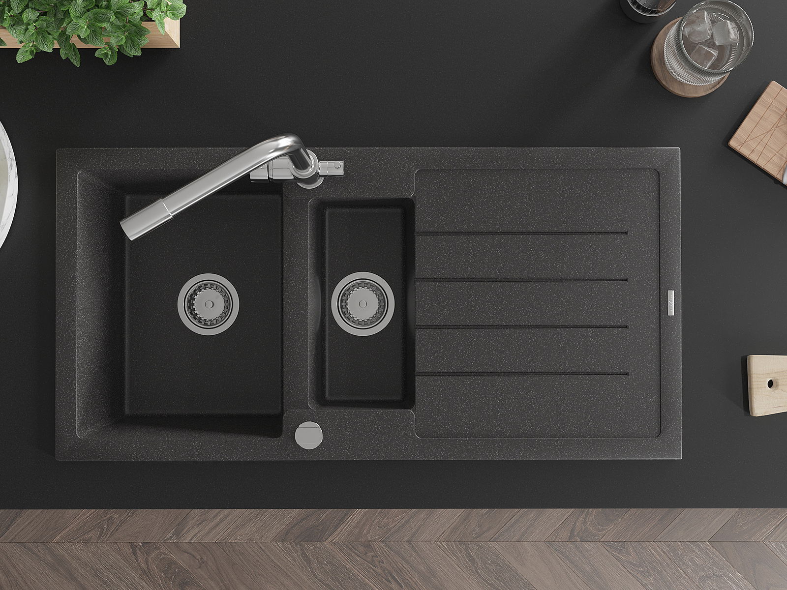 A mosogató kiváló minőségű gránitból készül. Ez egy elegáns és mindenekelőtt minden konyhához praktikus kiegészítés, stílusától függetlenül. A kiváló minőségű és a gránit tartósság biztosítja a sok éves használatát.