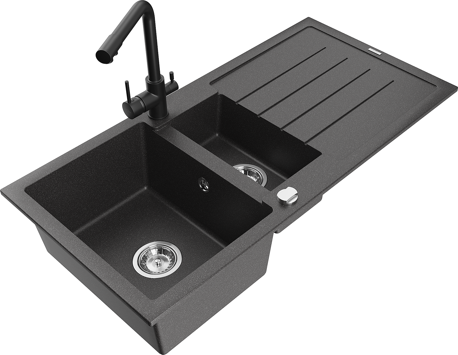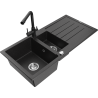 Mexen Andres 1,5-medencés gránit mosogató csepegtetővel és Duero konyhai csapteleppel, fekete foltos - 6515-76-671600-70