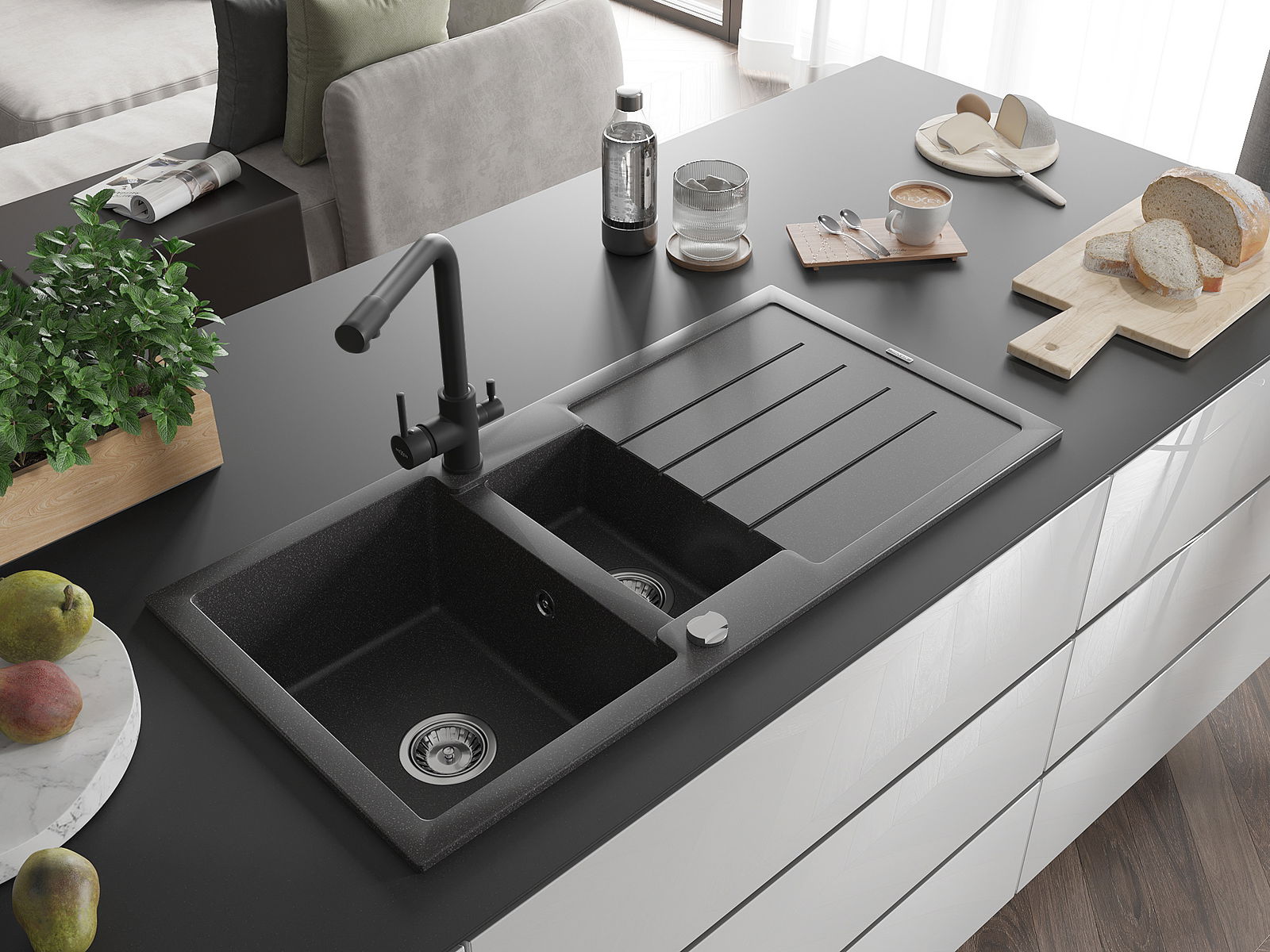 A mosogató kiváló minőségű gránitból készül. Ez egy elegáns és mindenekelőtt minden konyhához praktikus kiegészítés, stílusától függetlenül. A kiváló minőségű és a gránit tartósság biztosítja a sok éves használatát.