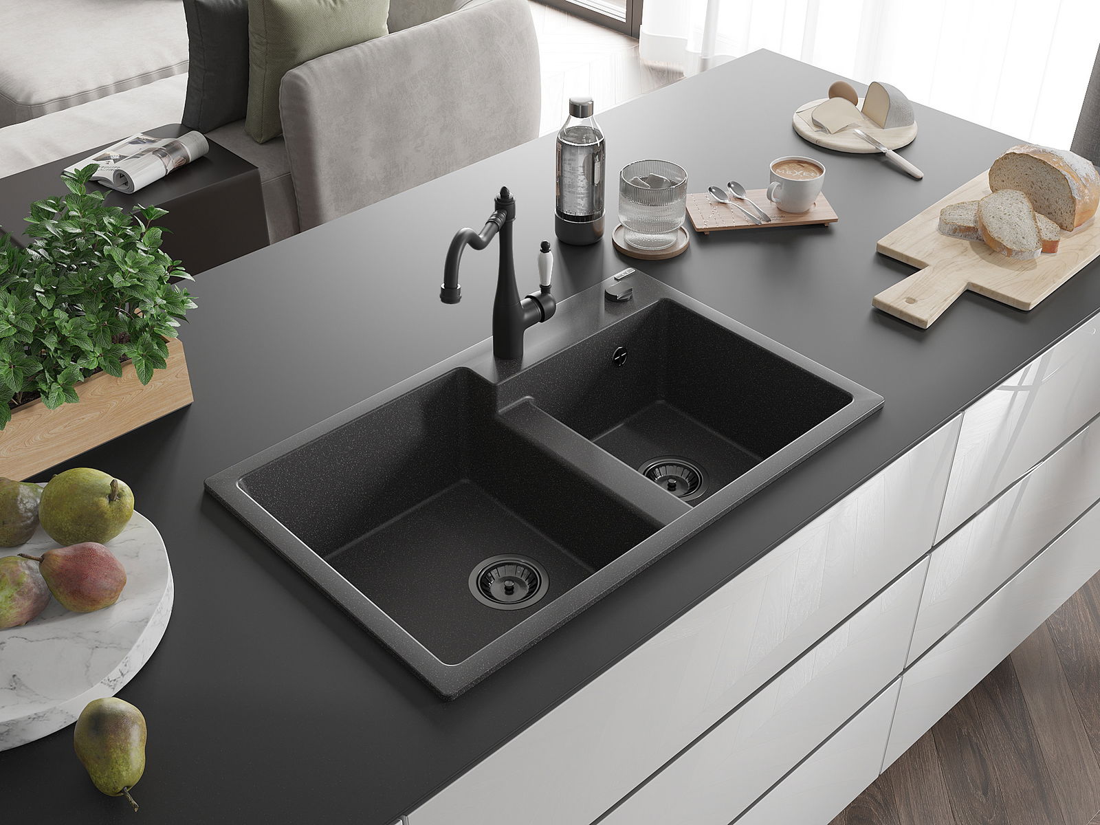 A mosogató magas minőségű gránitból készült. Elegáns, de mindenekelőtt praktikus kiegészítője minden konyhának, függetlenül annak stílusától. A gránit magas minősége és tartóssága hosszú távú használatot biztosít.