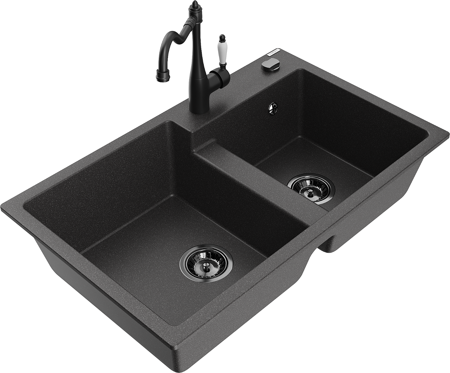 Mexen Tomas 2 medencés gránit mosogató Carla konyhai csappal, fekete pöttyös - 6516-76-670700-70-B