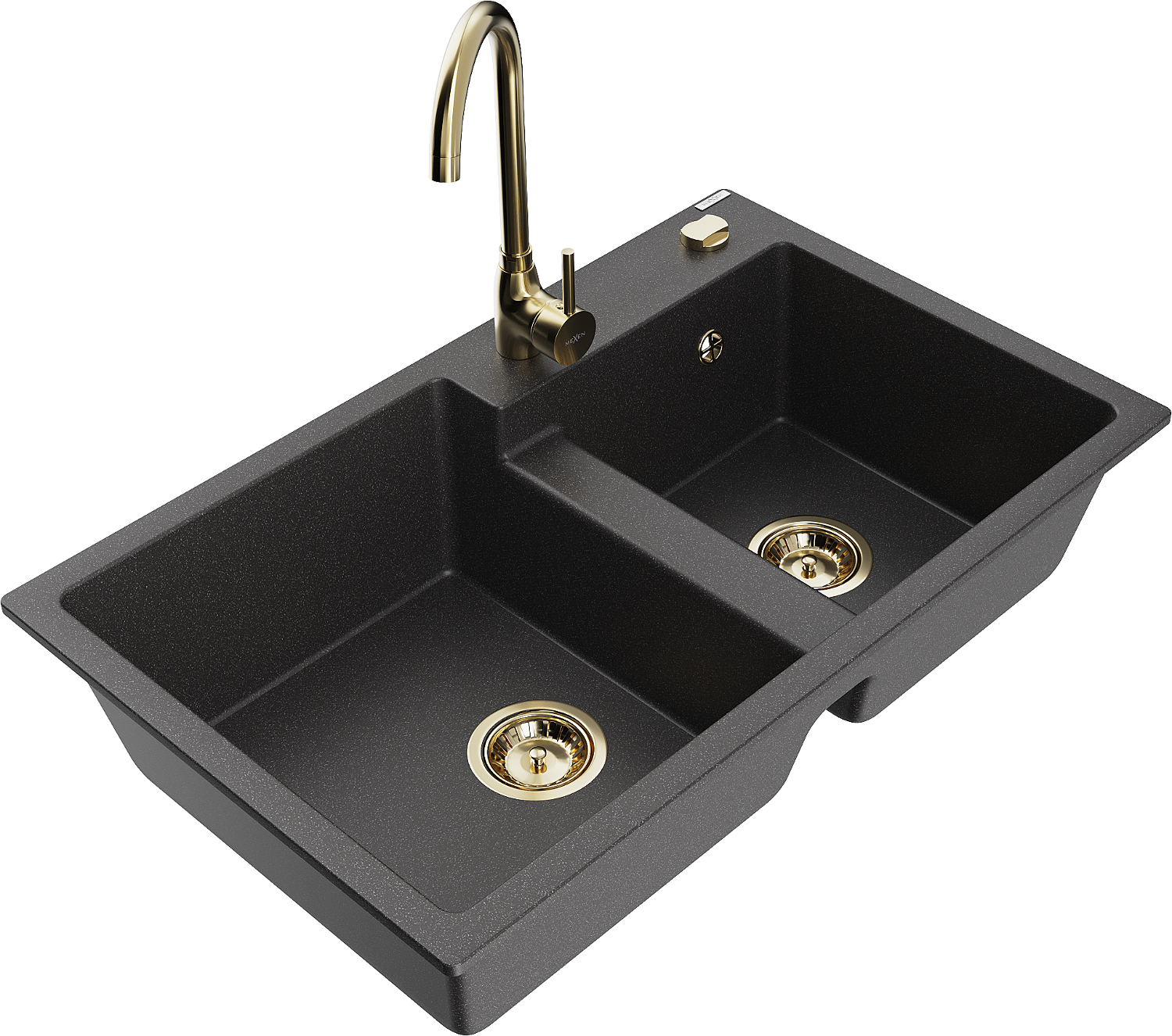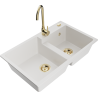 Mexen Tomas gránit kétmedencés mosogató konyhai csapteleppel Telma, fekete pöttyös - 6516-76-670200-50