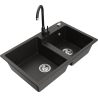Mexen Tomas gránit 2-medencés mosogató Telma konyhai csapteleppel, fekete - 6516-77-670200-70