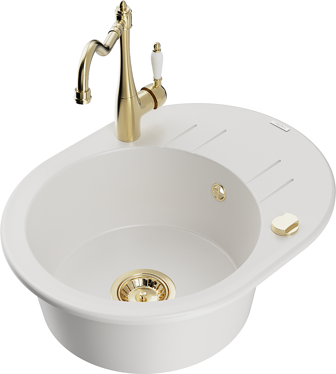 Mexen Kevin egymedencés, csepegtetős és Carla konyhai csapteleppel, fehér - 6517-20-670700-50